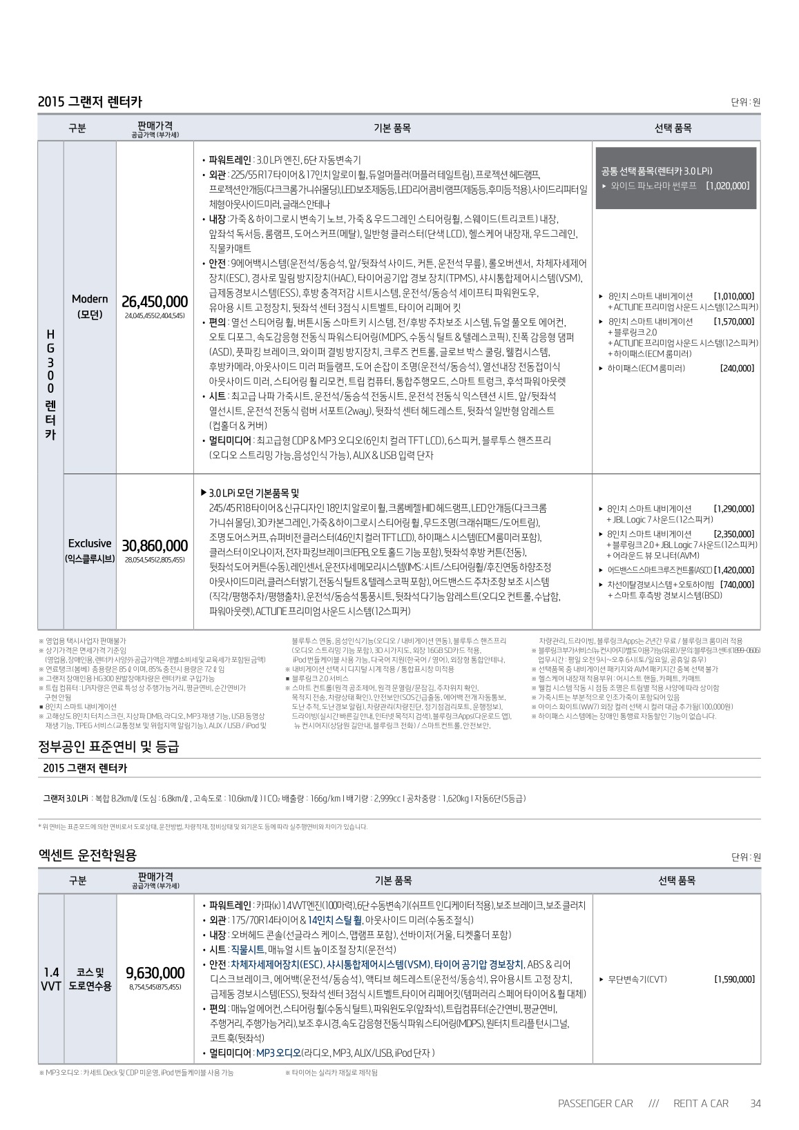 ※ 본 가격표의 모든 저작권은 해당 차량 제조사에 있습니다.