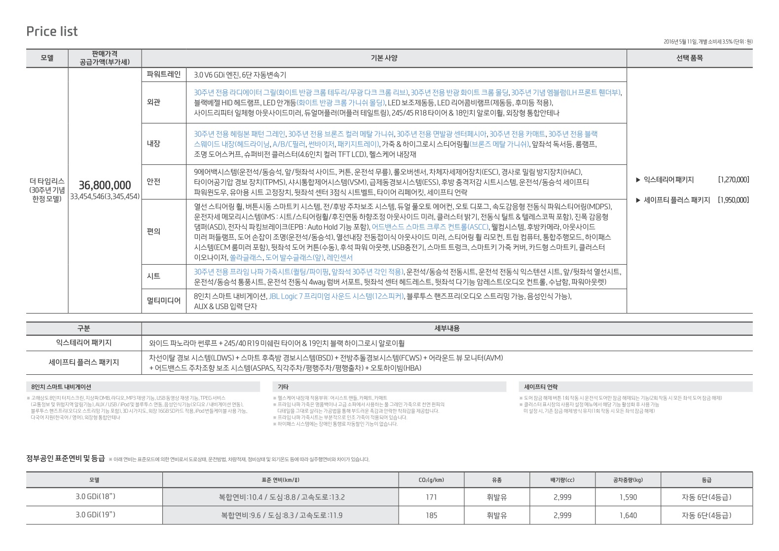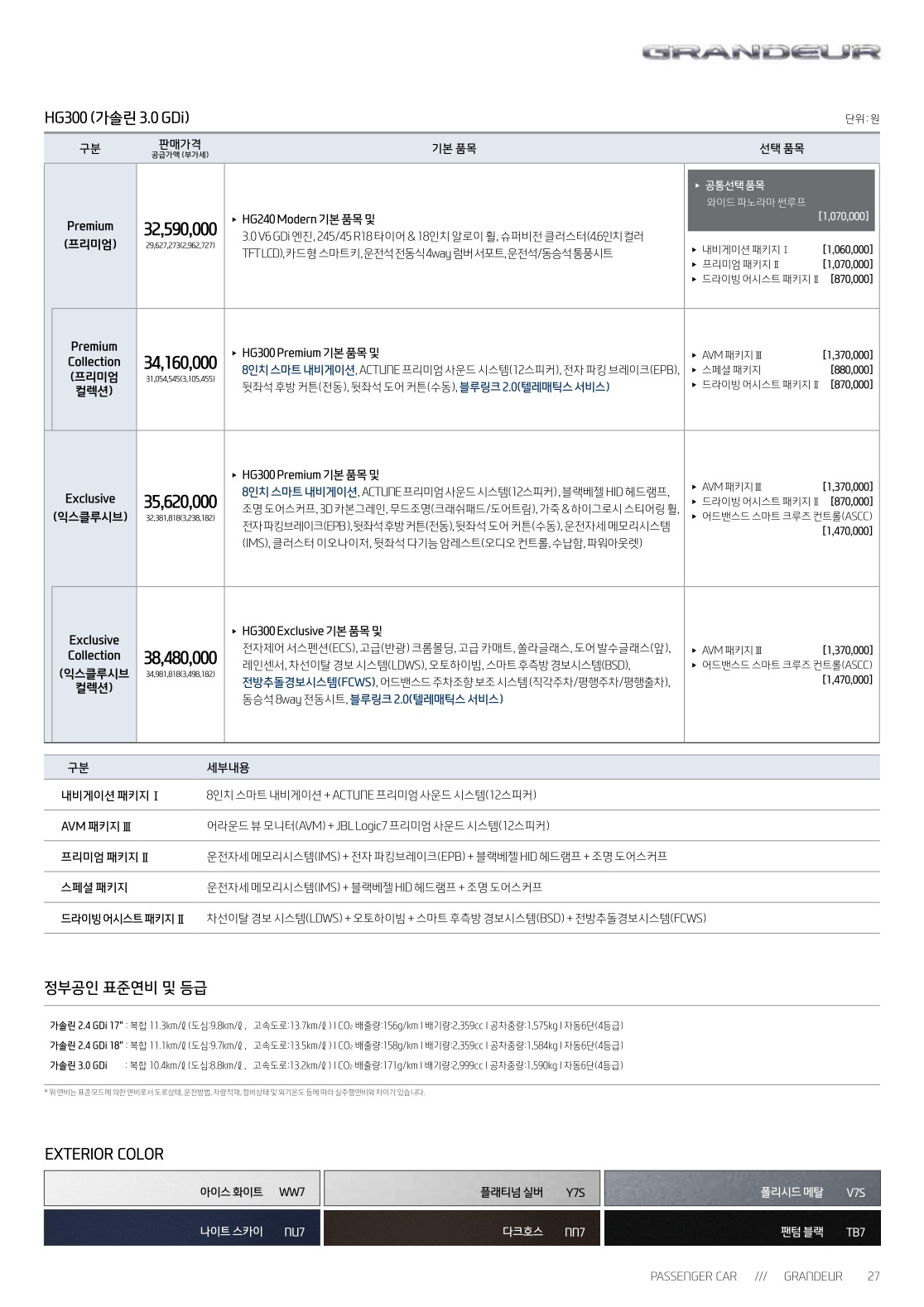 2016년 11월 그랜저 신차가격표 (그랜저IG 신차가격표)