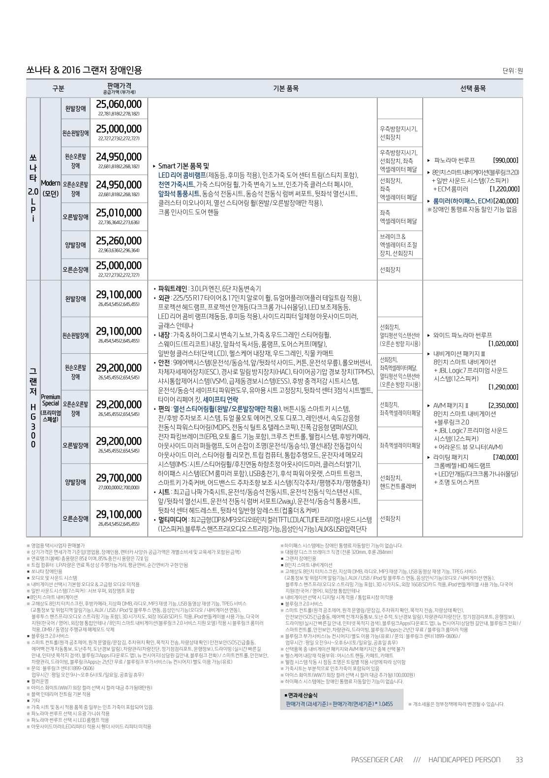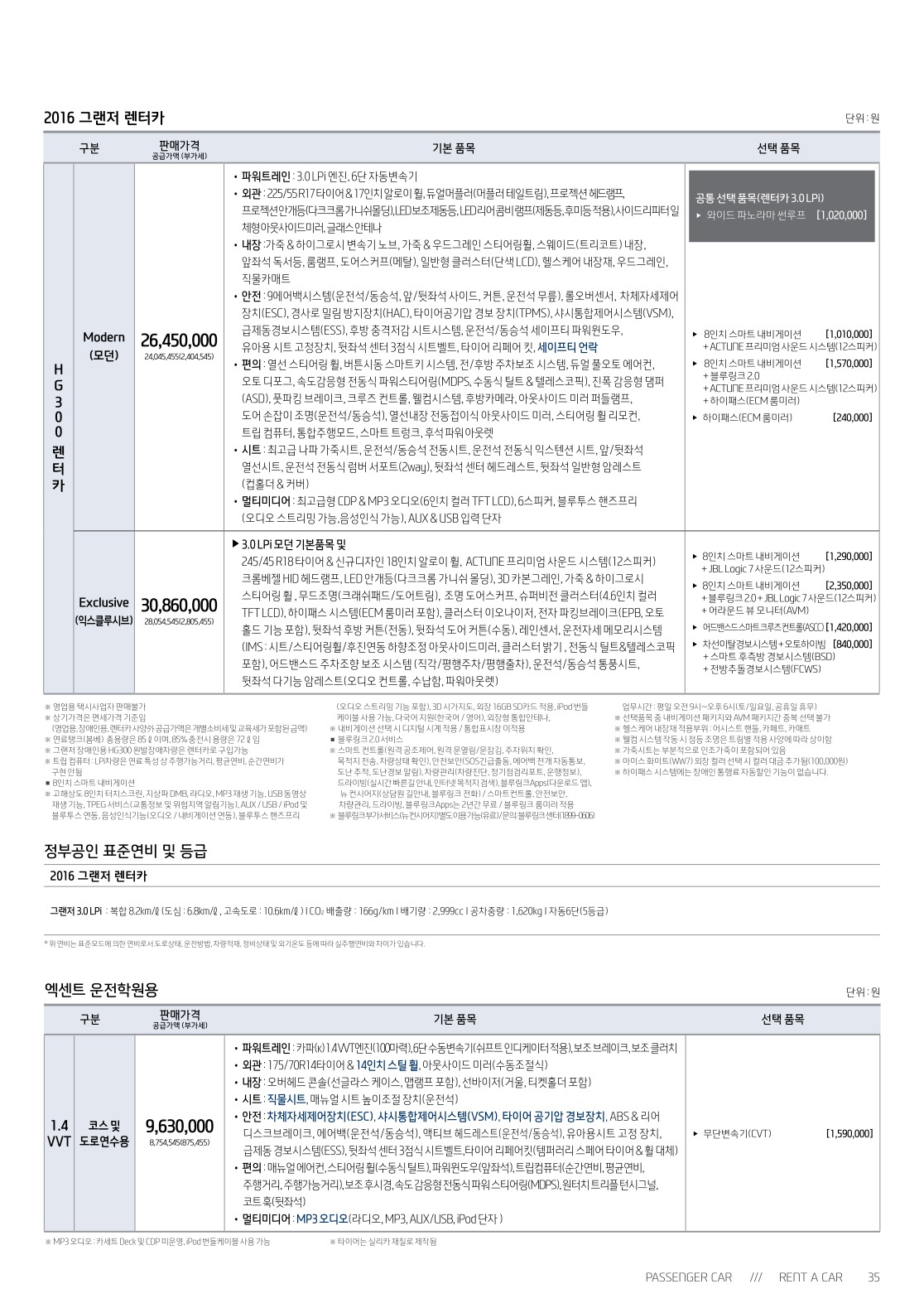 ※ 본 가격표의 모든 저작권은 해당 차량 제조사에 있습니다.
