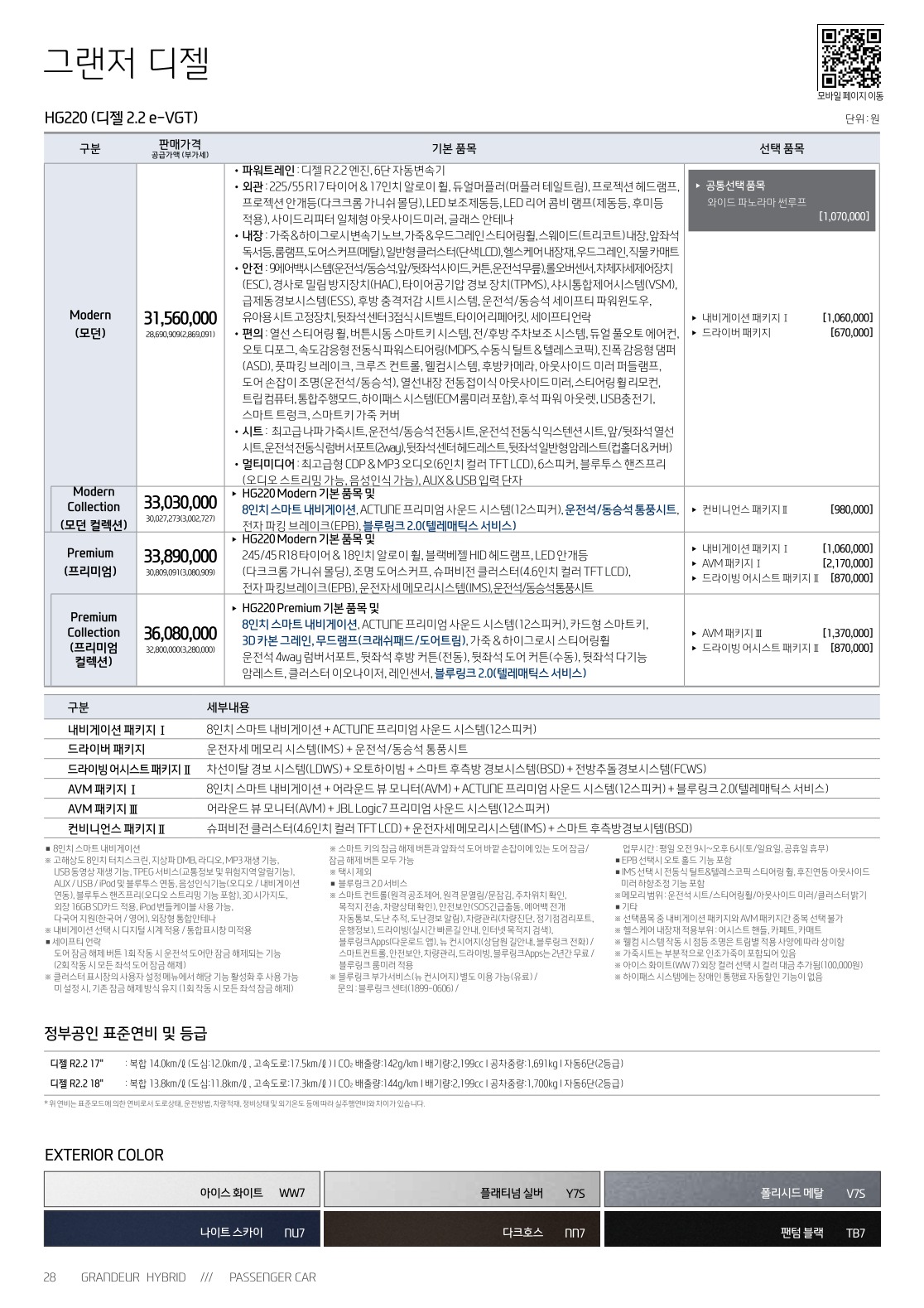 2016년 3월 그랜저 신차가격표