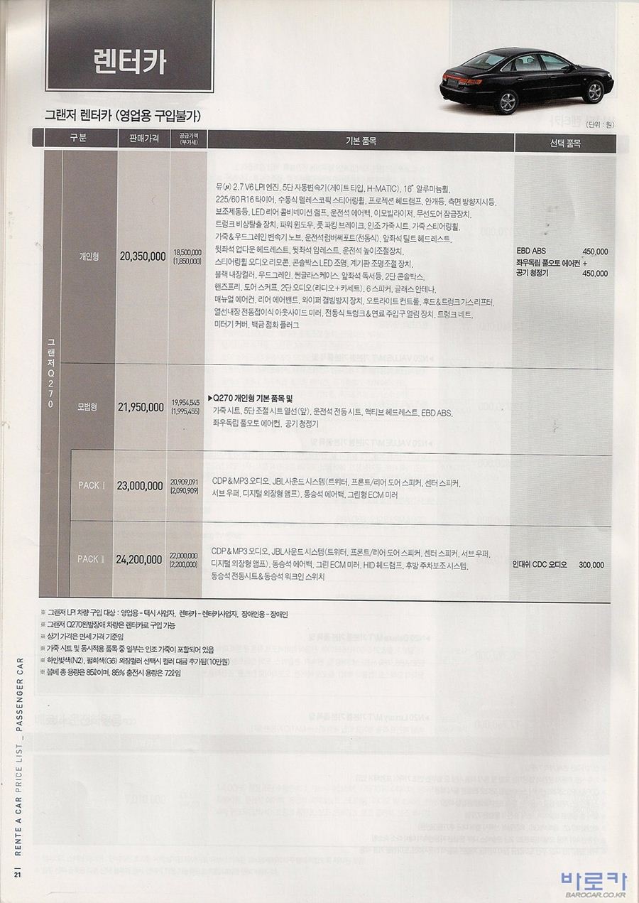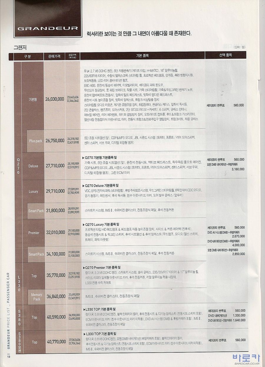 2006년 12월 그랜져TG 신차가격표 (LPG 포함)