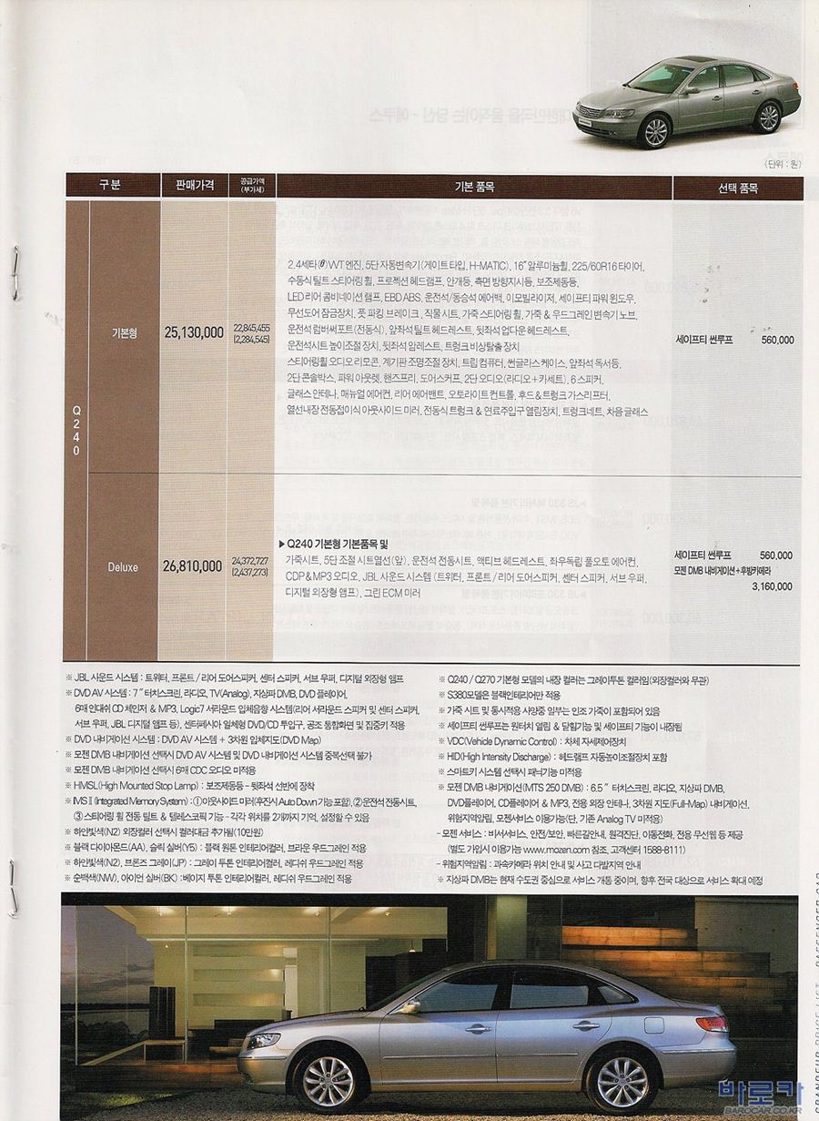2008년 7월 그랜져TG 신차가격표 (LPG포함)