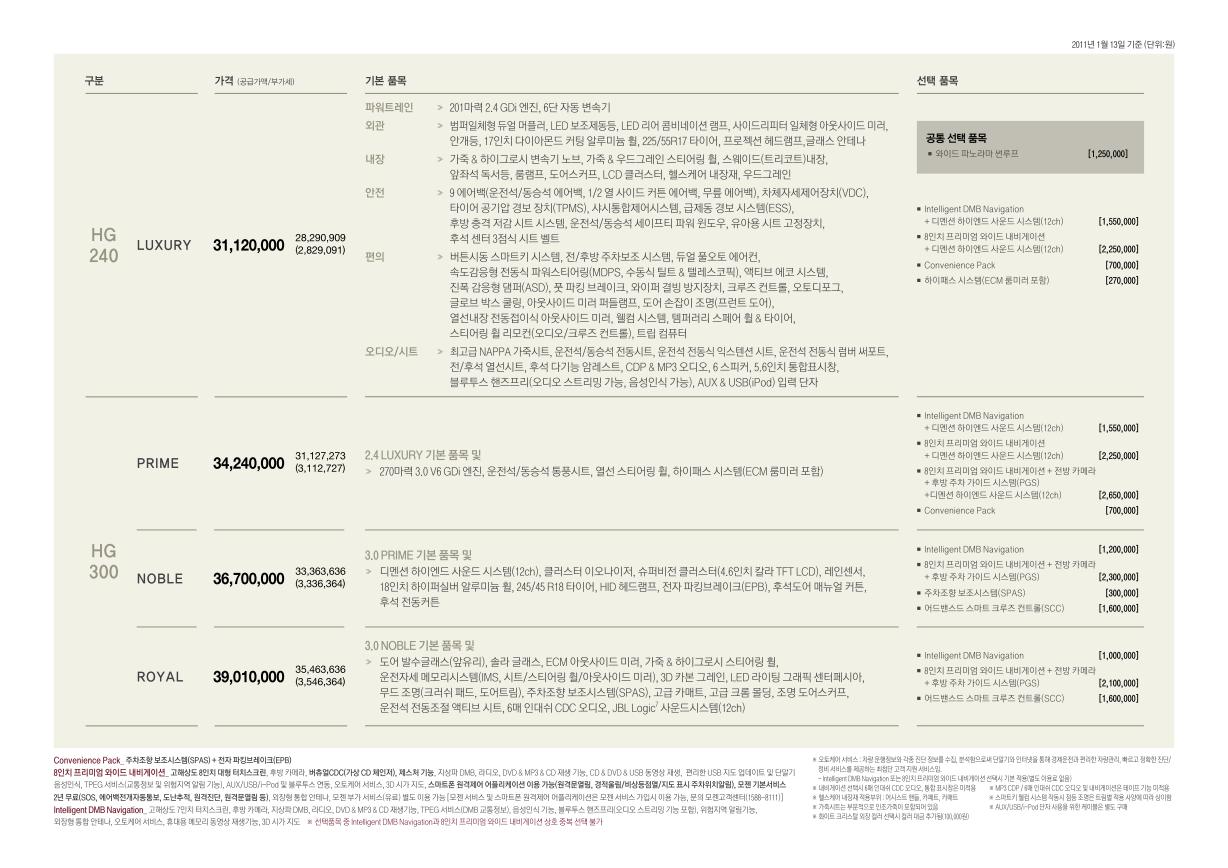 2010년 12월 그랜져TG (더럭셔리 그랜져) 신차가격표