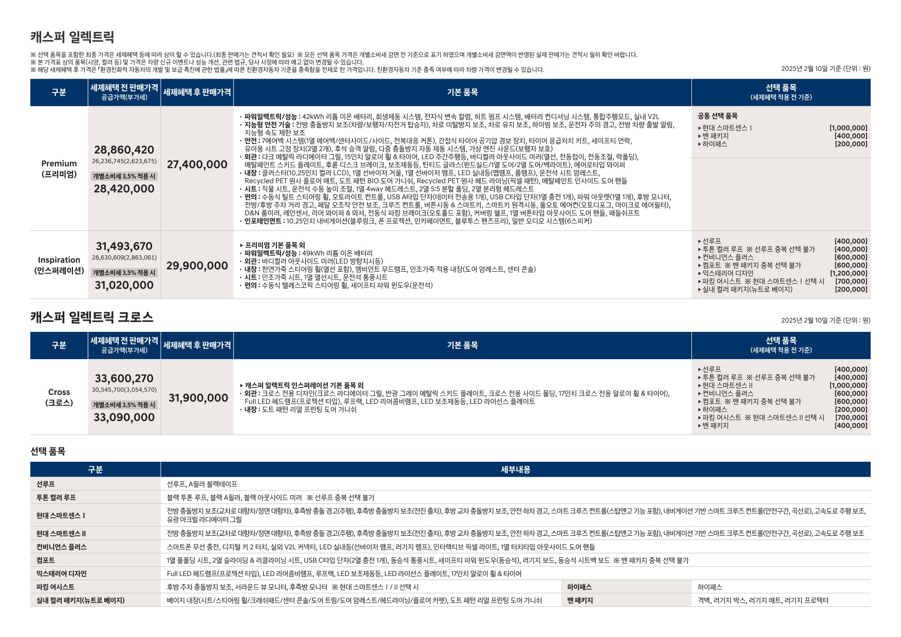 2025년 2월 캐스퍼 일렉트릭 가격표 (캐스퍼 일렉트릭 크로스 출시)