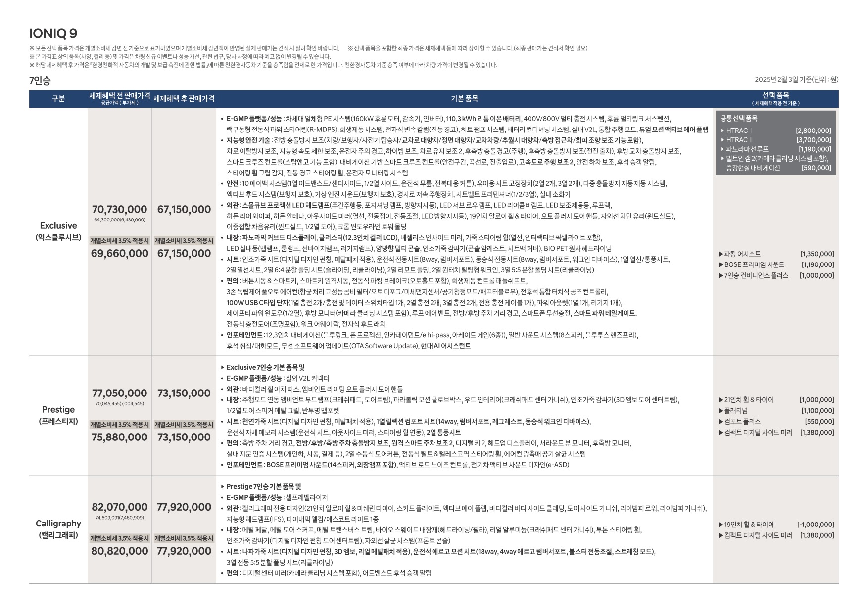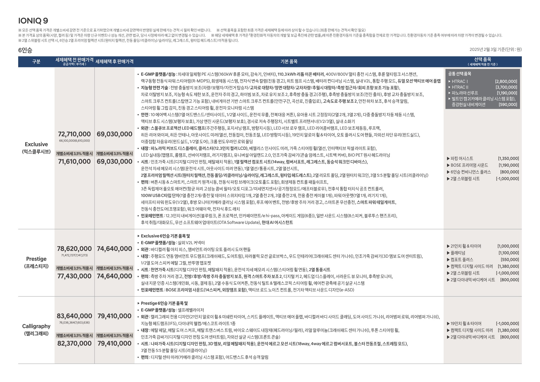 2025년 2월 아이오닉9 신차가격표 (아이오닉9 출시)