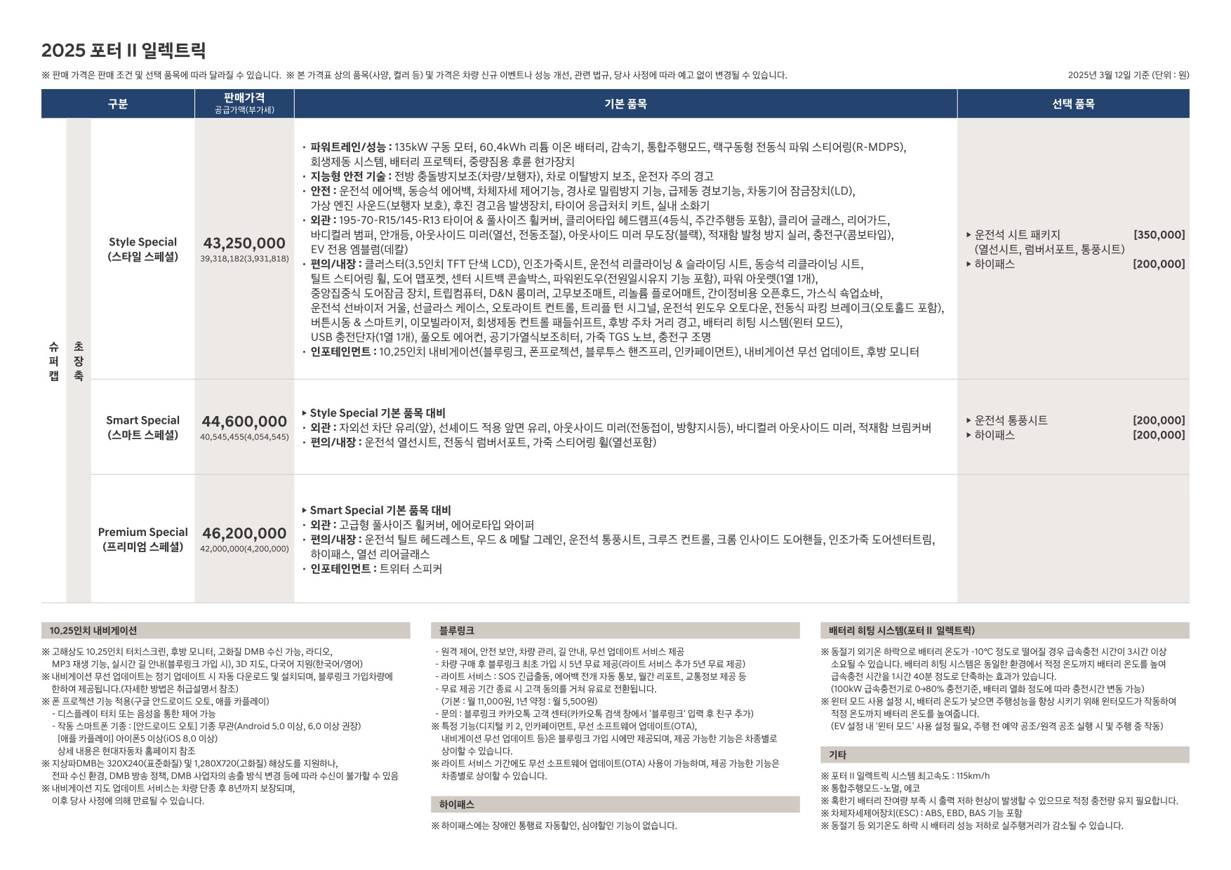 2025년 3월 포터2 일렉트릭 신차가격표 (2025년형 포터2 일렉트릭 출시)