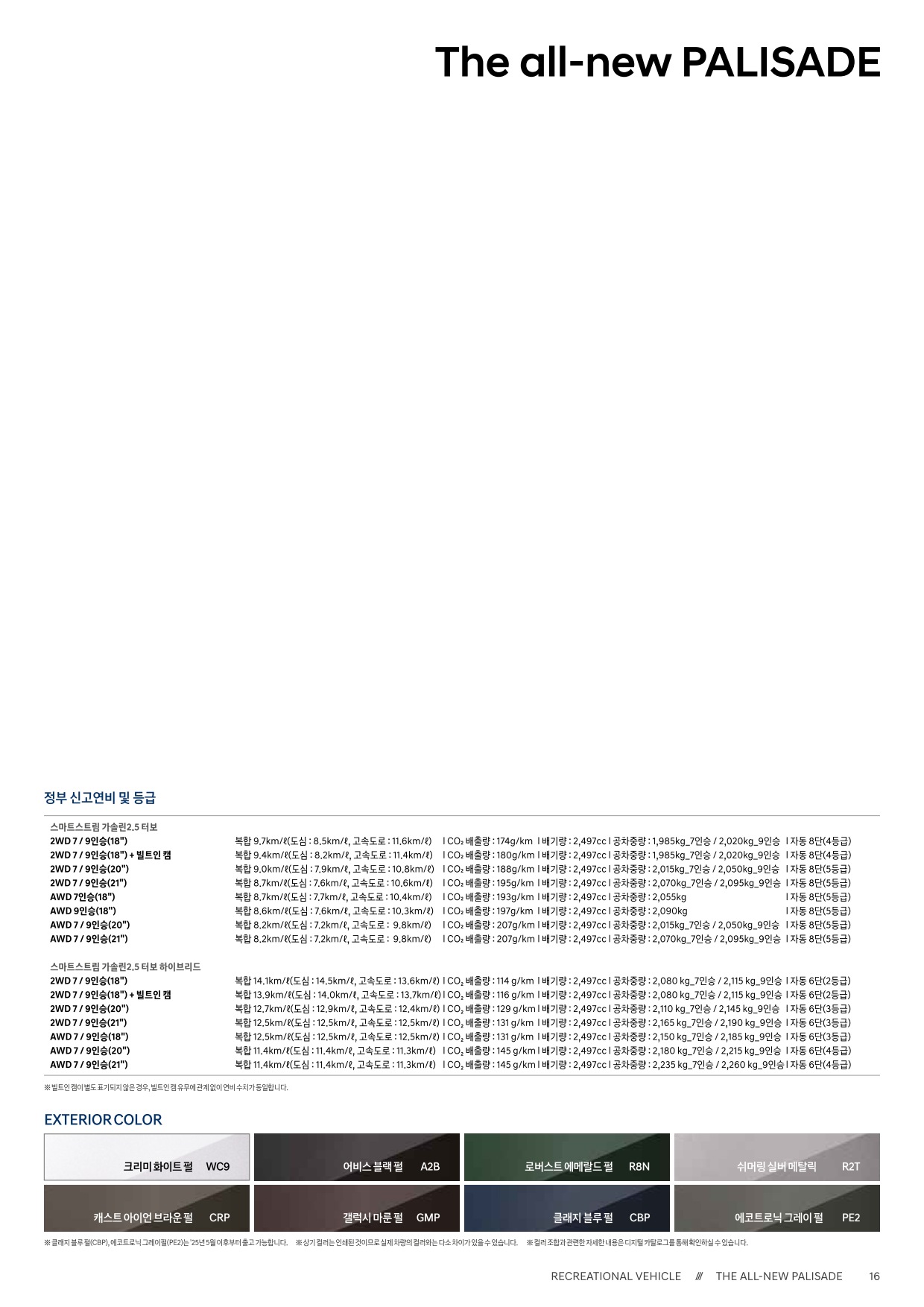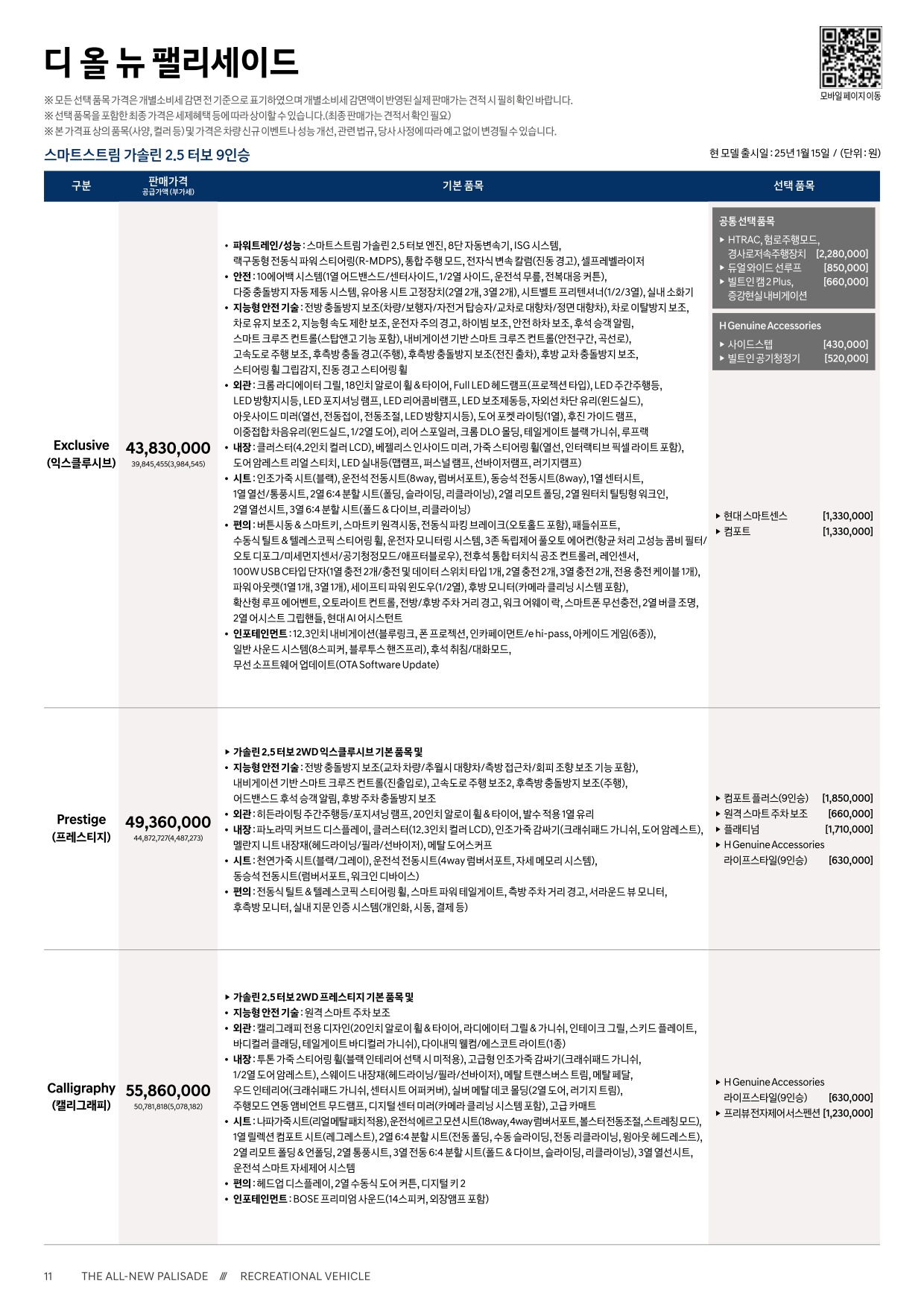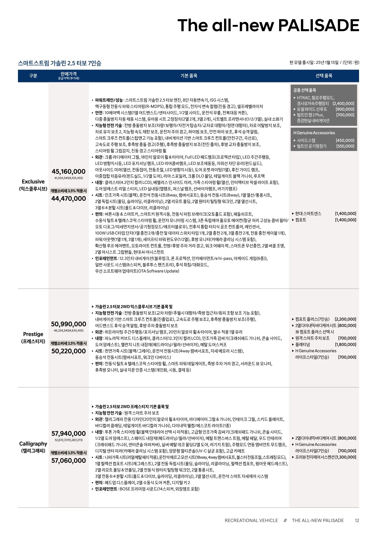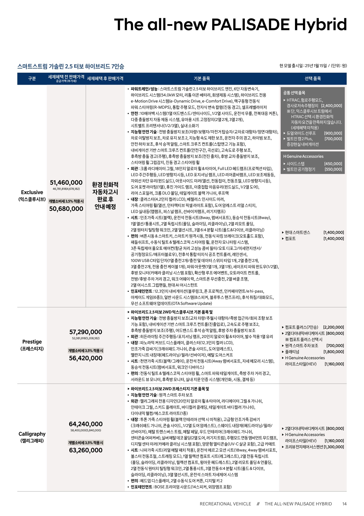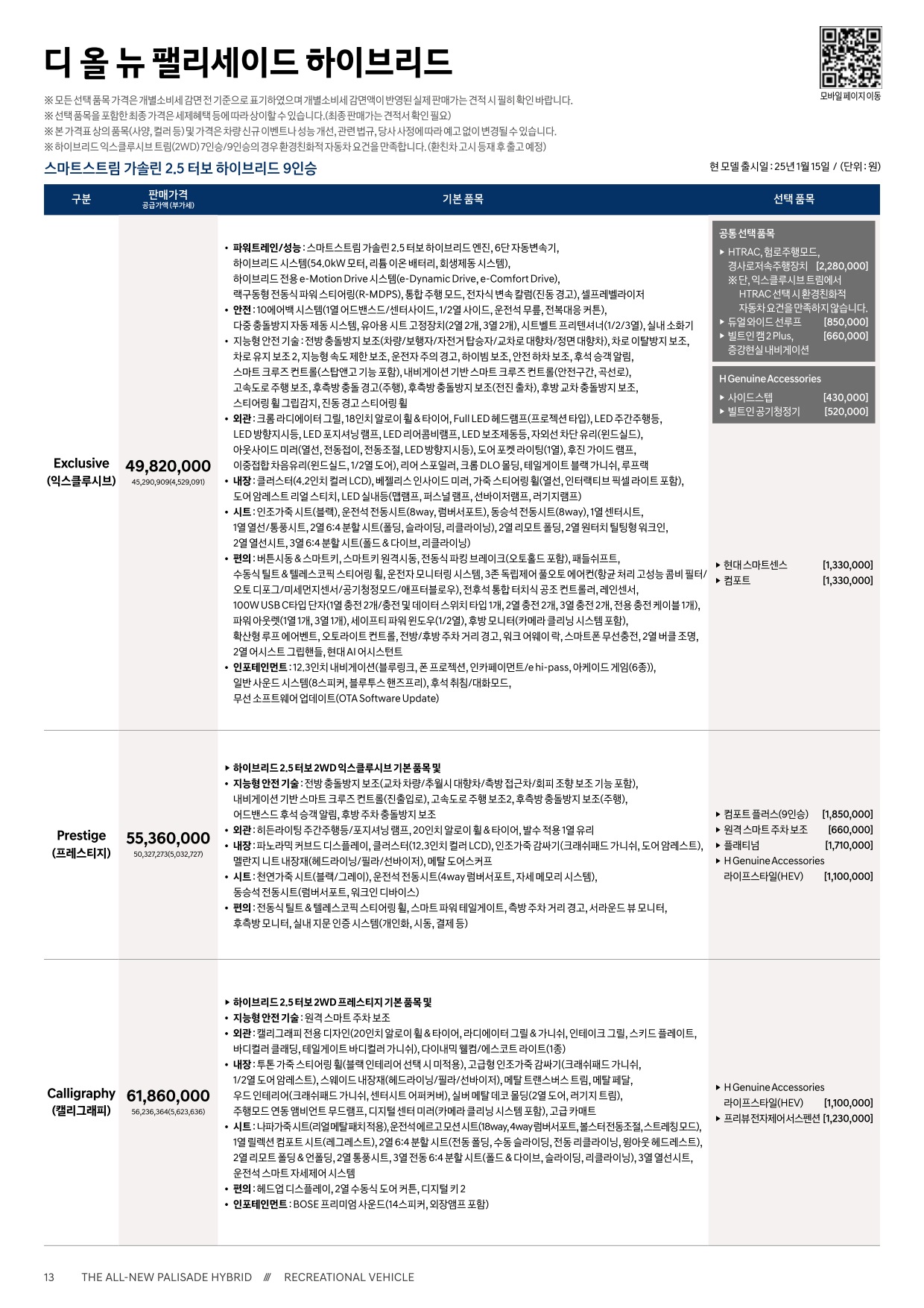 2025년 4월 팰리세이드 신차가격표 (2.5터보 하이브리드 모델 연비 발표)