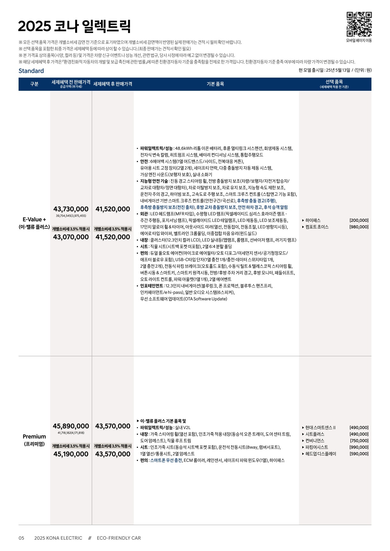 2025년 5월 코니 일렉트릭 신차가격표 (2025년형 코나 일렉트릭 출시)