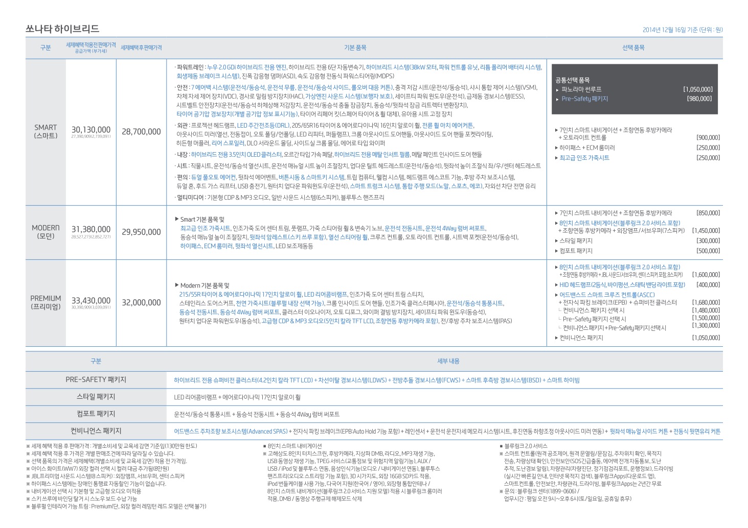 2014년 12월 LF쏘나타 하이브리드 신차가격표