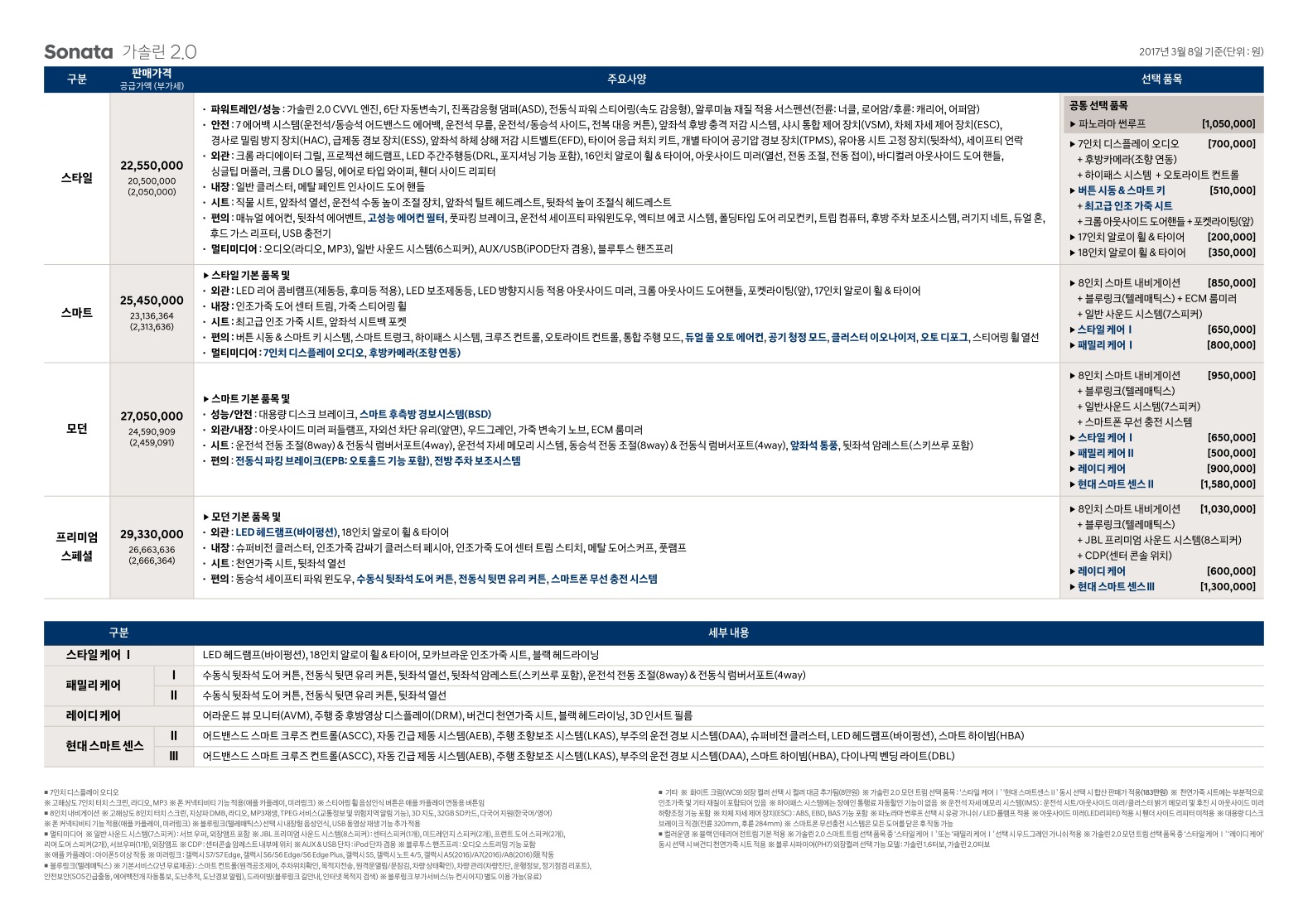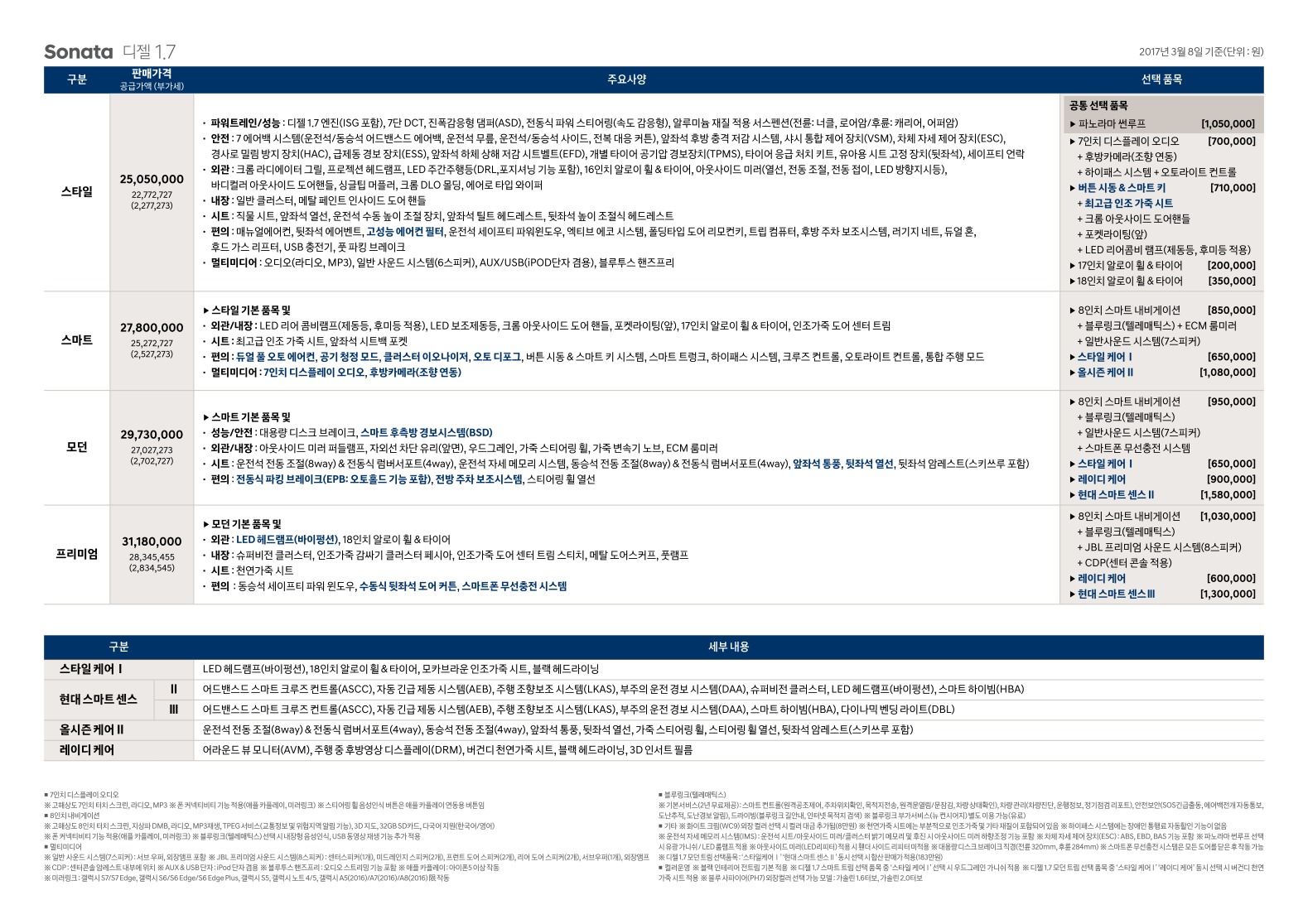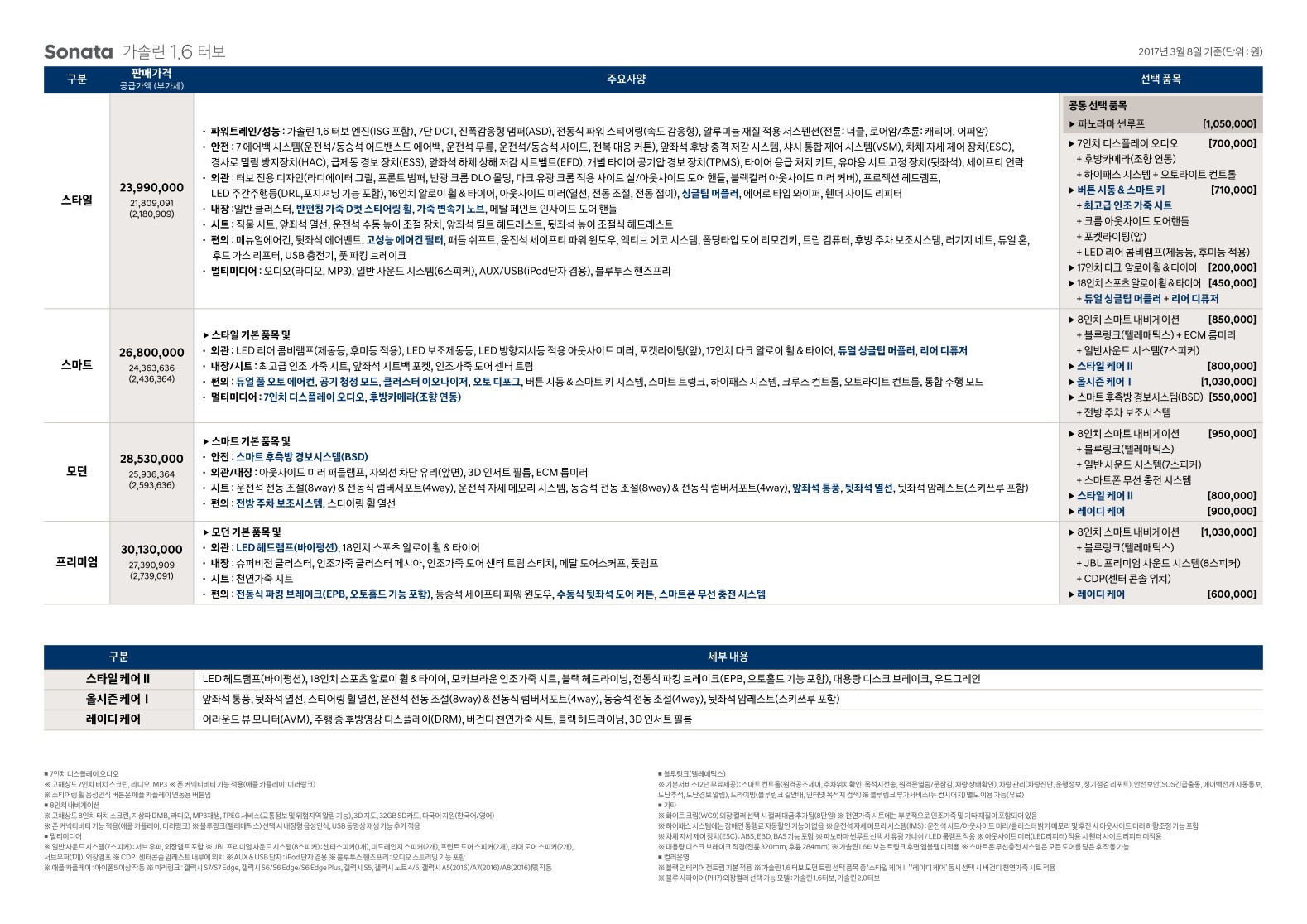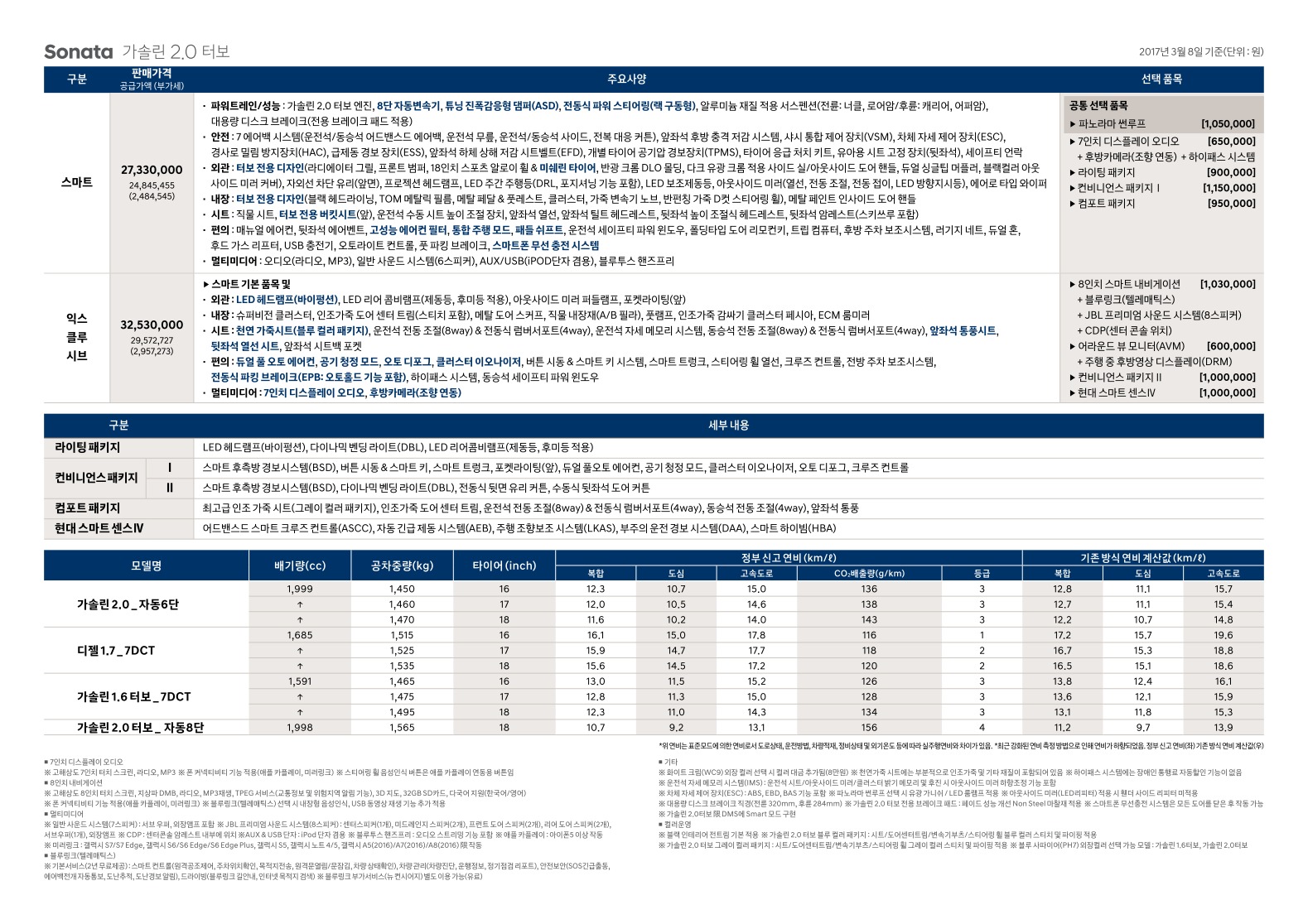 2017년 3월 쏘나타 뉴라이즈 신차가격표