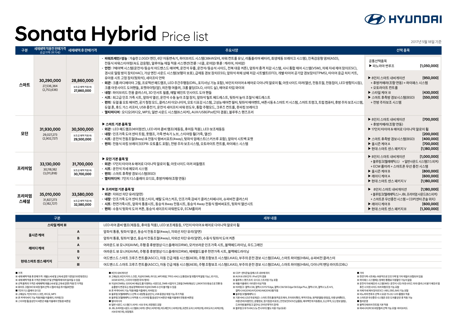 2017년 5월 쏘나타 하이브리드 신차가격표
