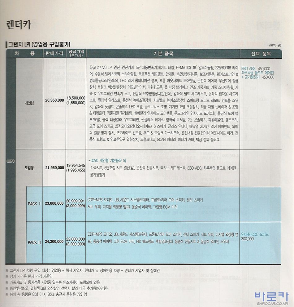 2006년 9월 그랜져TG LPi 신차가격표