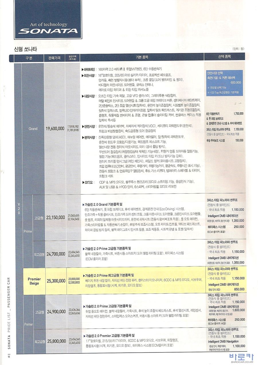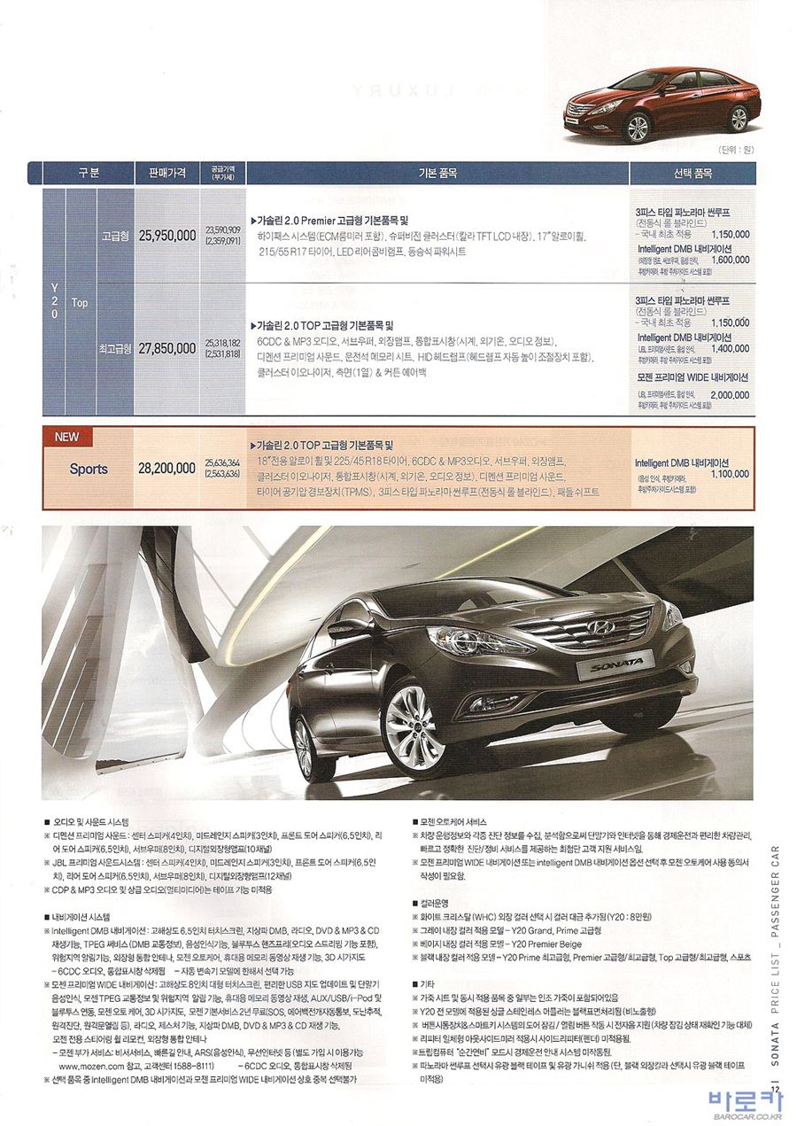 2010년 2월 YF쏘나타 신차가격표 (LPG포함)