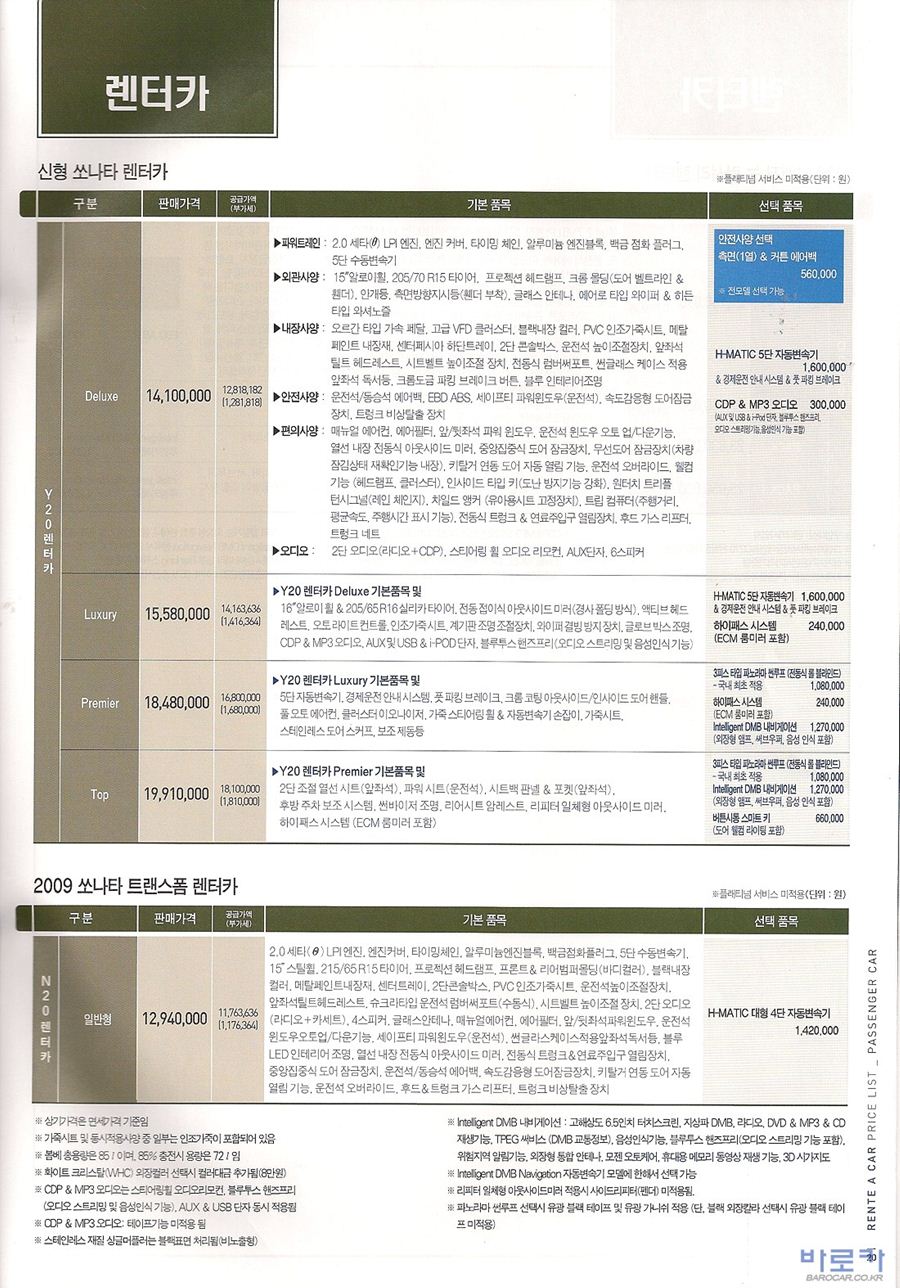 2009년 7월 NF쏘나타 트랜스폼 신차가격표 (LPG포함)