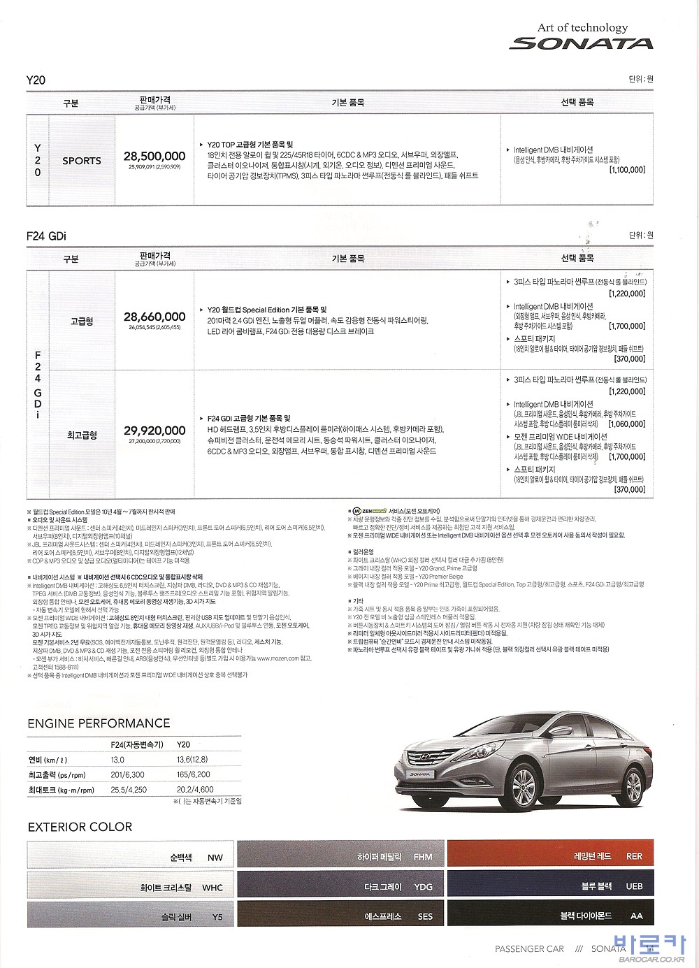 2010년 4월 YF쏘나타 신차가격표