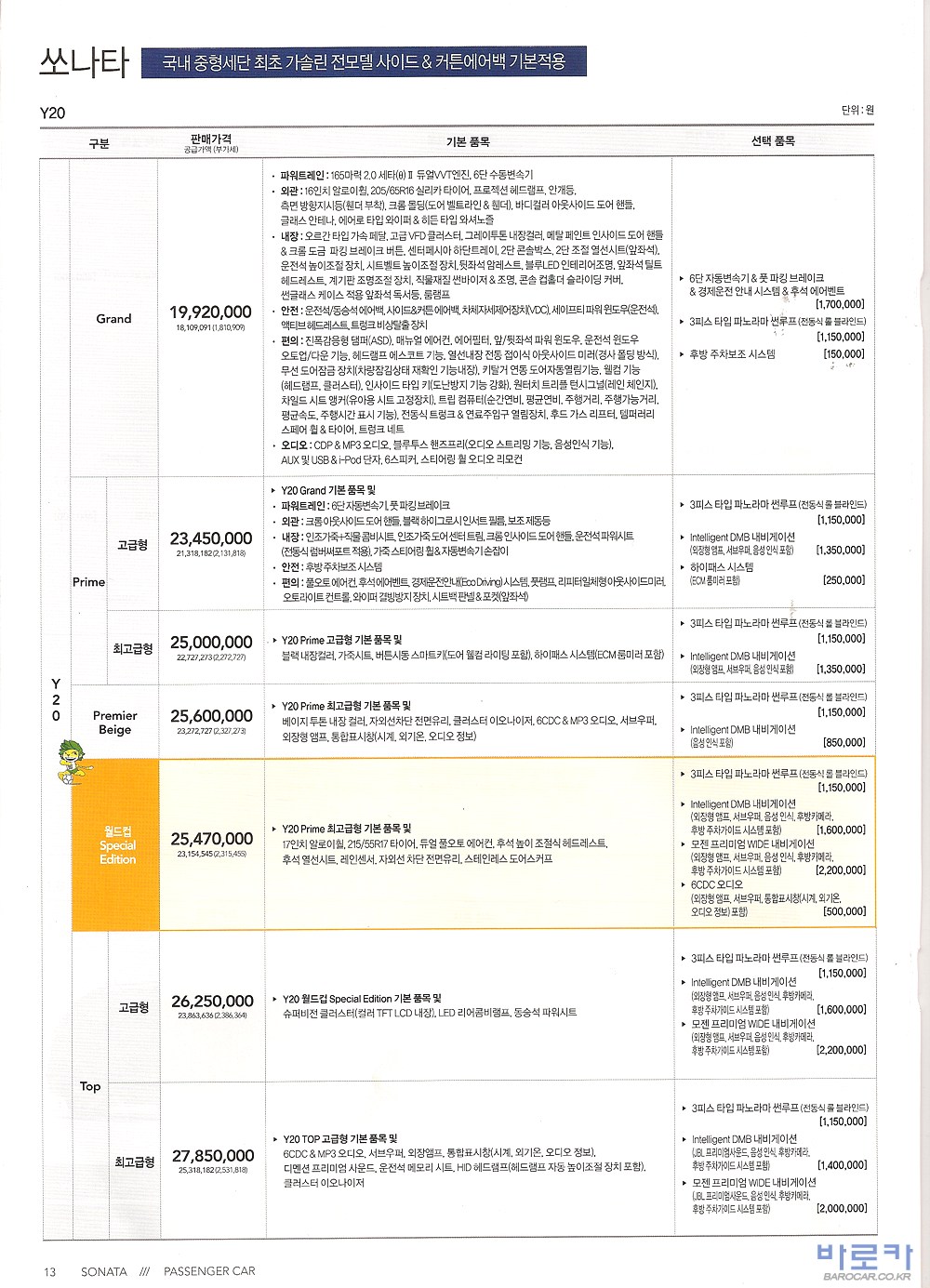 2010년 2월 YF쏘나타 신차가격표 (LPG포함)