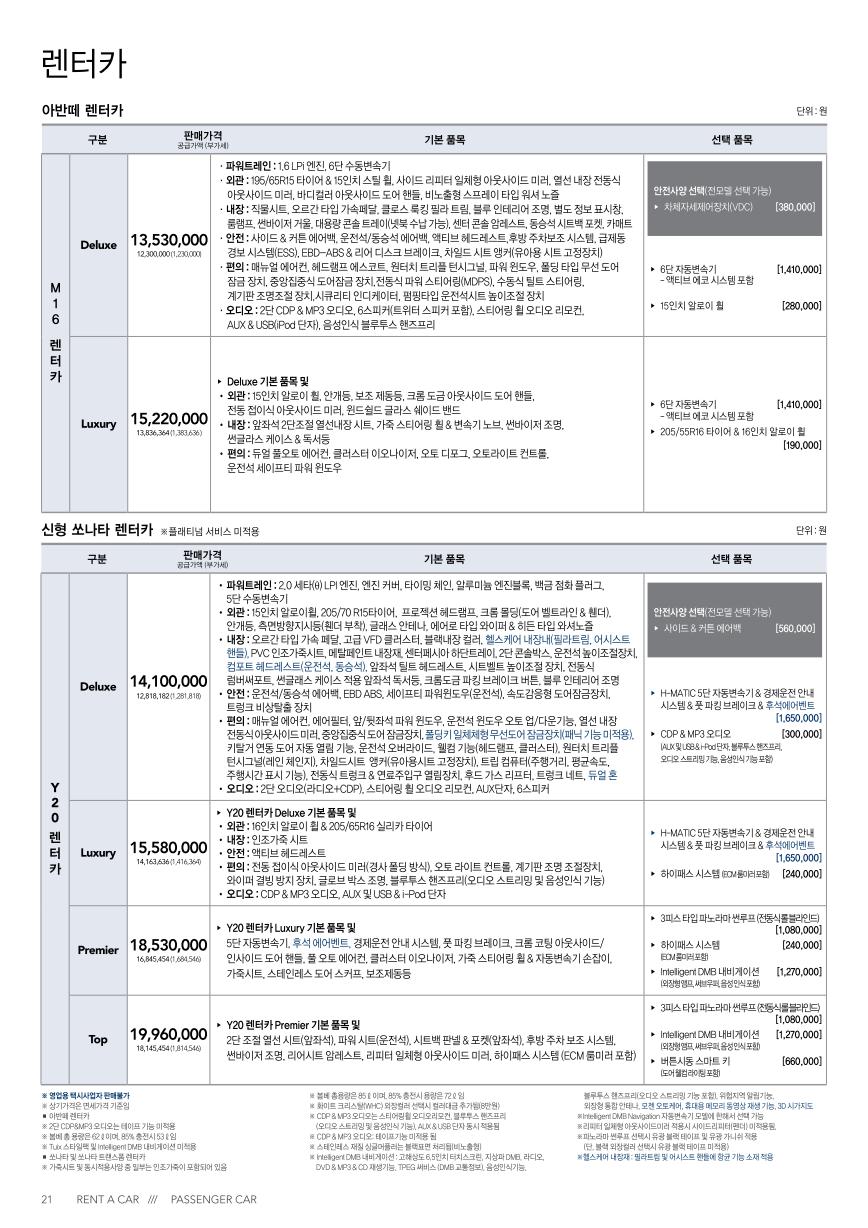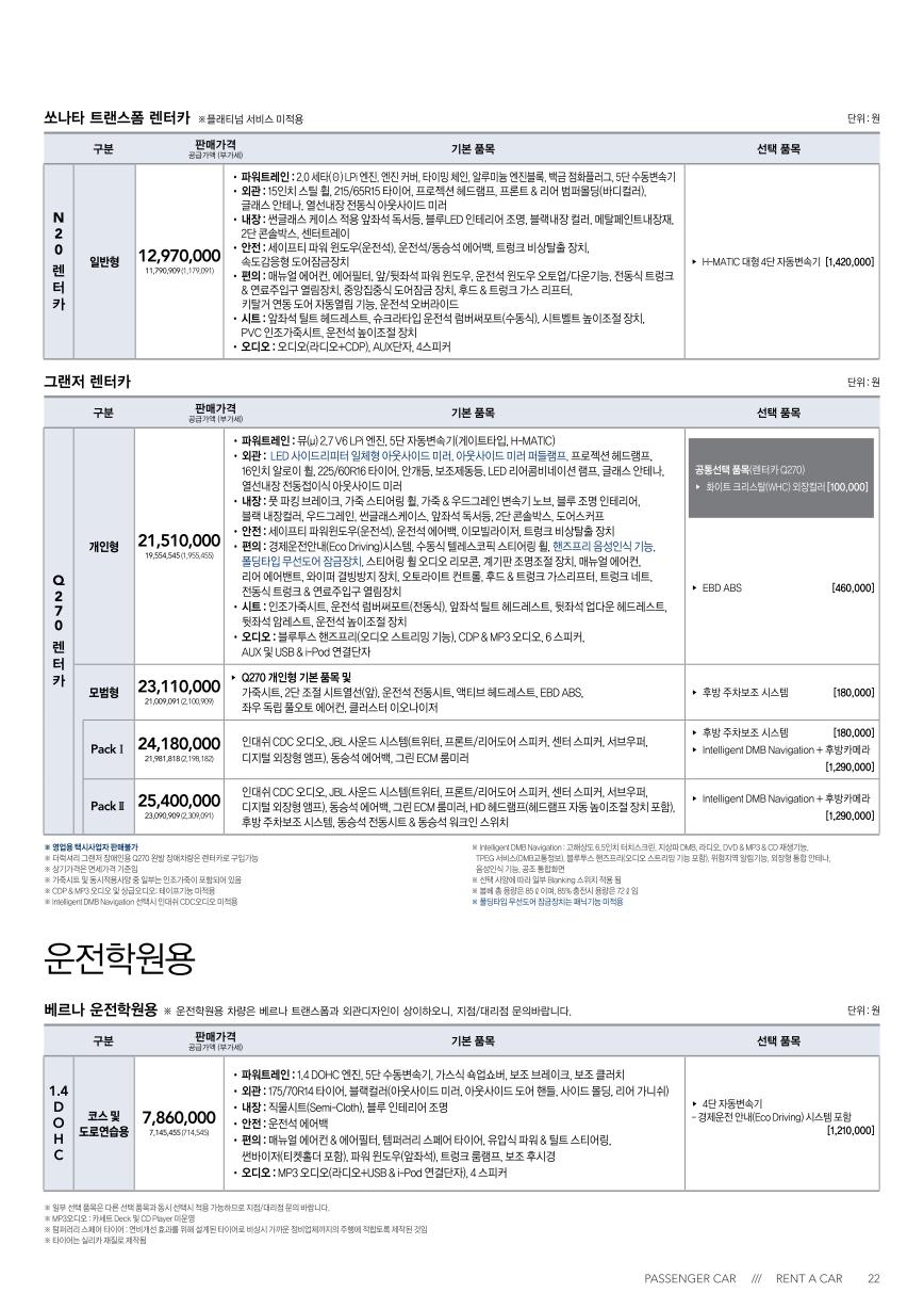 ※ 본 가격표의 모든 저작권은 해당 차량 제조사에 있습니다.
