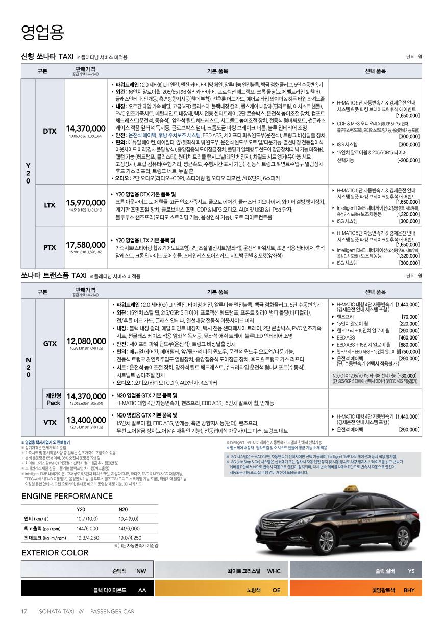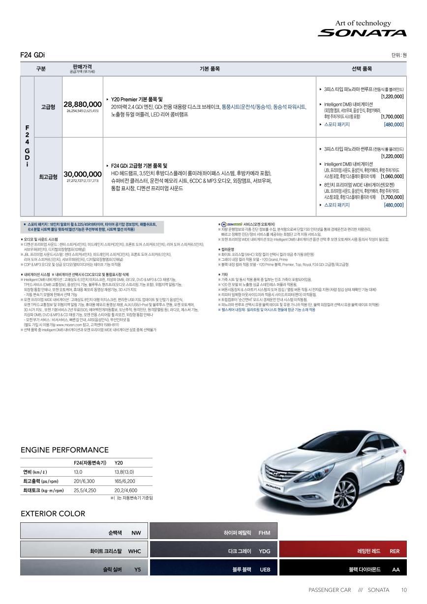 2010년 6월 YF쏘나타 신차가격표 (LPG포함)