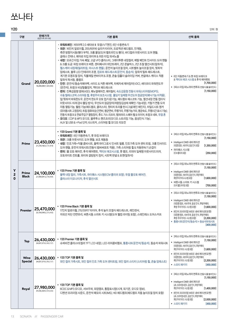 2010년 12월 YF쏘나타 신차가격표 (LPG포함)