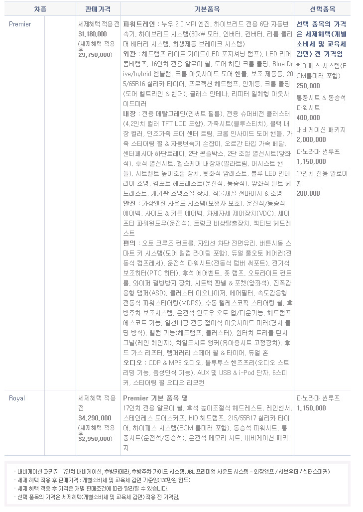 2011년 5월 YF쏘나타 하이브리드 신차가격표