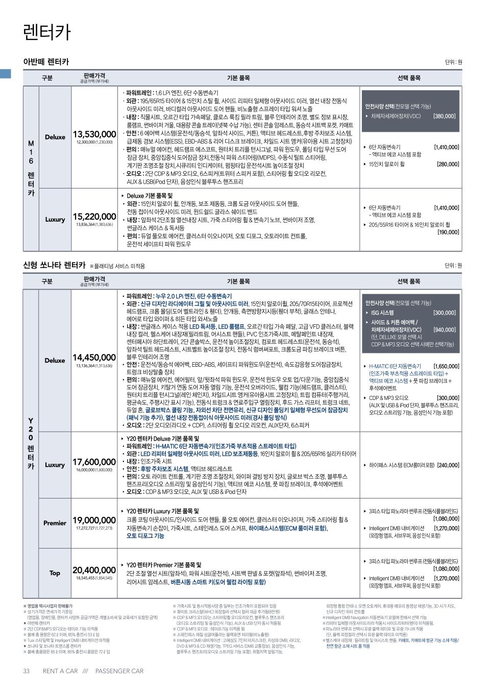※ 본 가격표의 모든 저작권은 해당 차량 제조사에 있습니다.