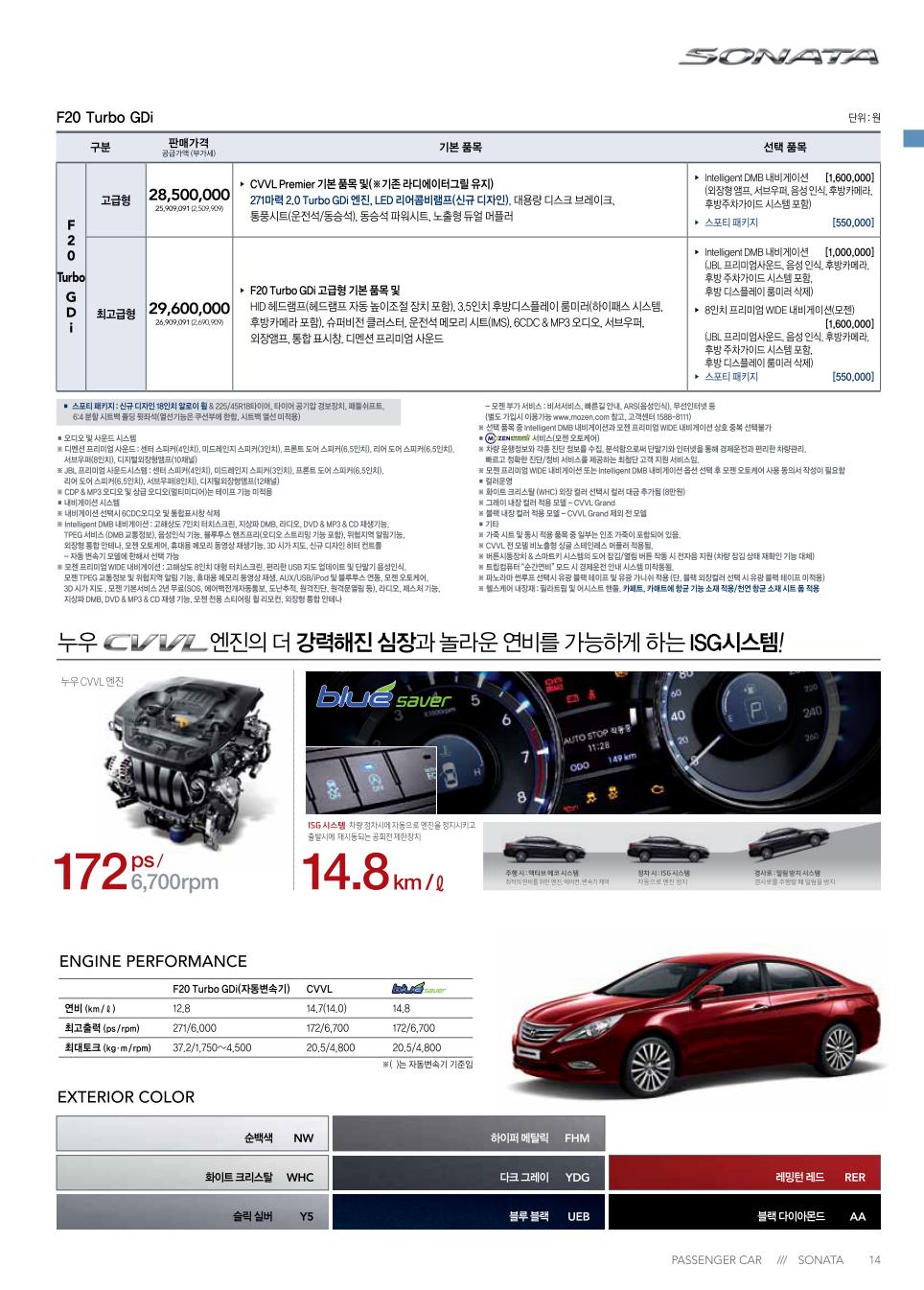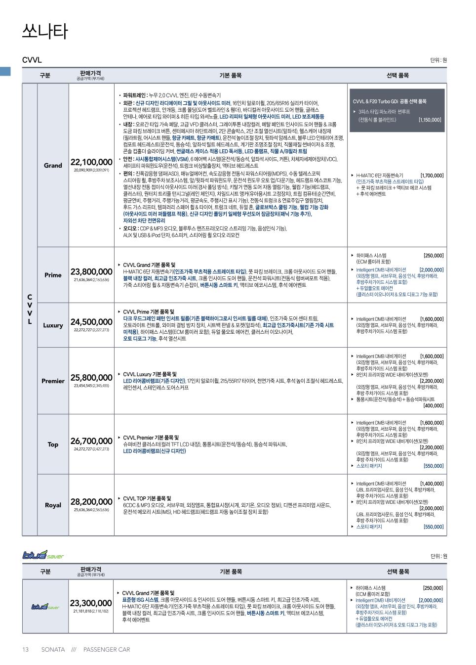 2012년 2월 쏘나타 신차가격표 (누우 CVVL 엔진 탑재)