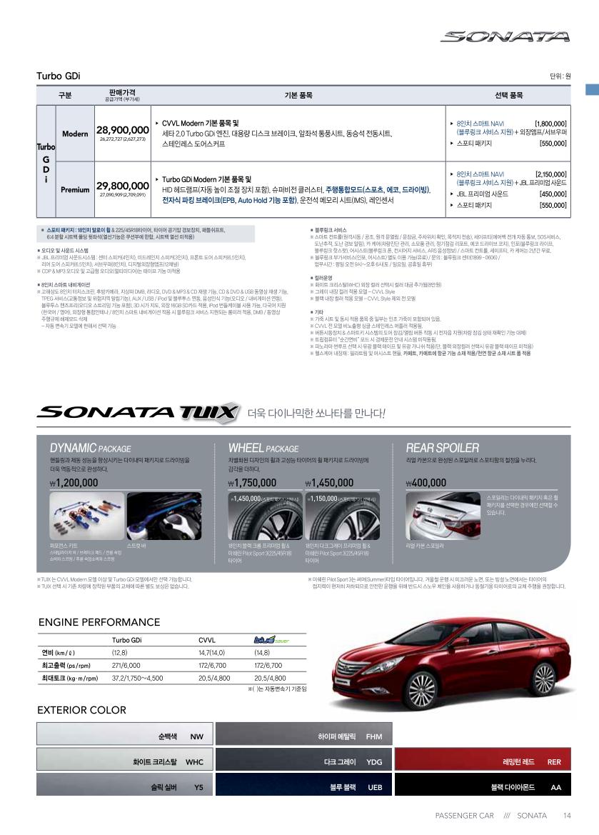2012년 2월 쏘나타 신차가격표 (누우 CVVL 엔진 탑재)