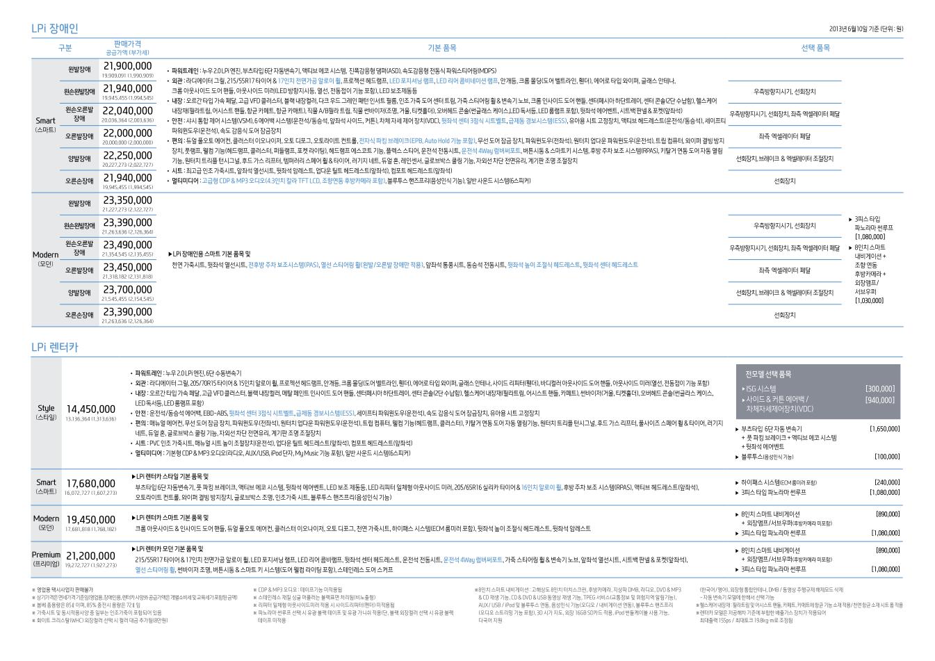 ※ 본 가격표의 모든 저작권은 해당 차량 제조사에 있습니다.