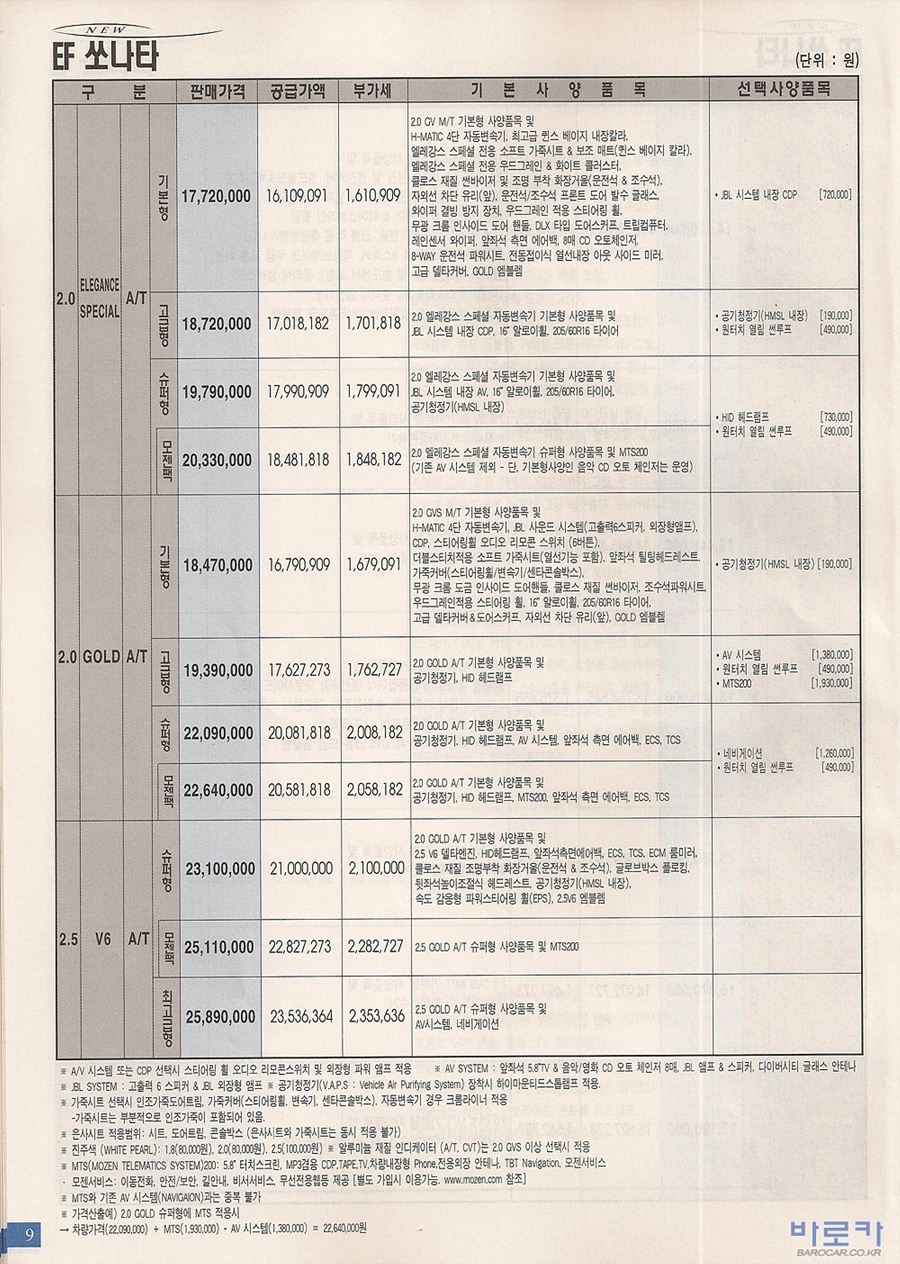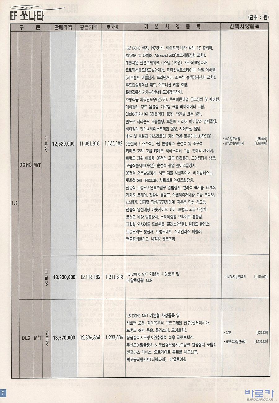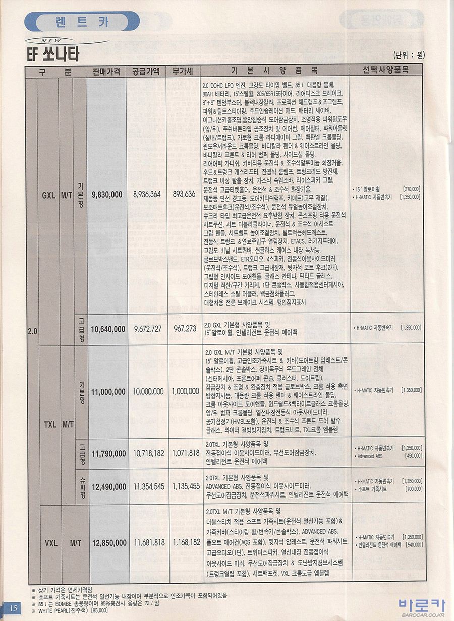 2004년 8월 뉴EF쏘나타 신차가격표