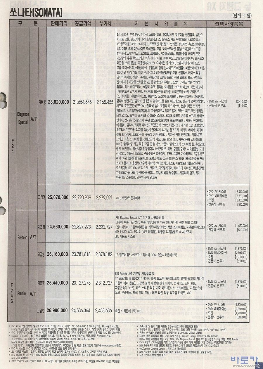 2004년 8월 뉴EF쏘나타 신차가격표