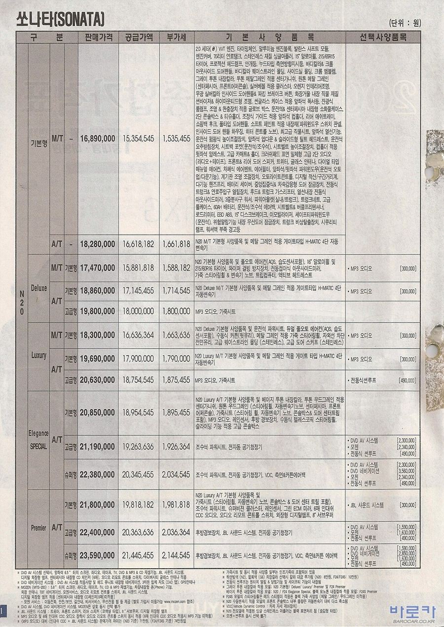 2005년 4월 NF쏘나타 신차가격표