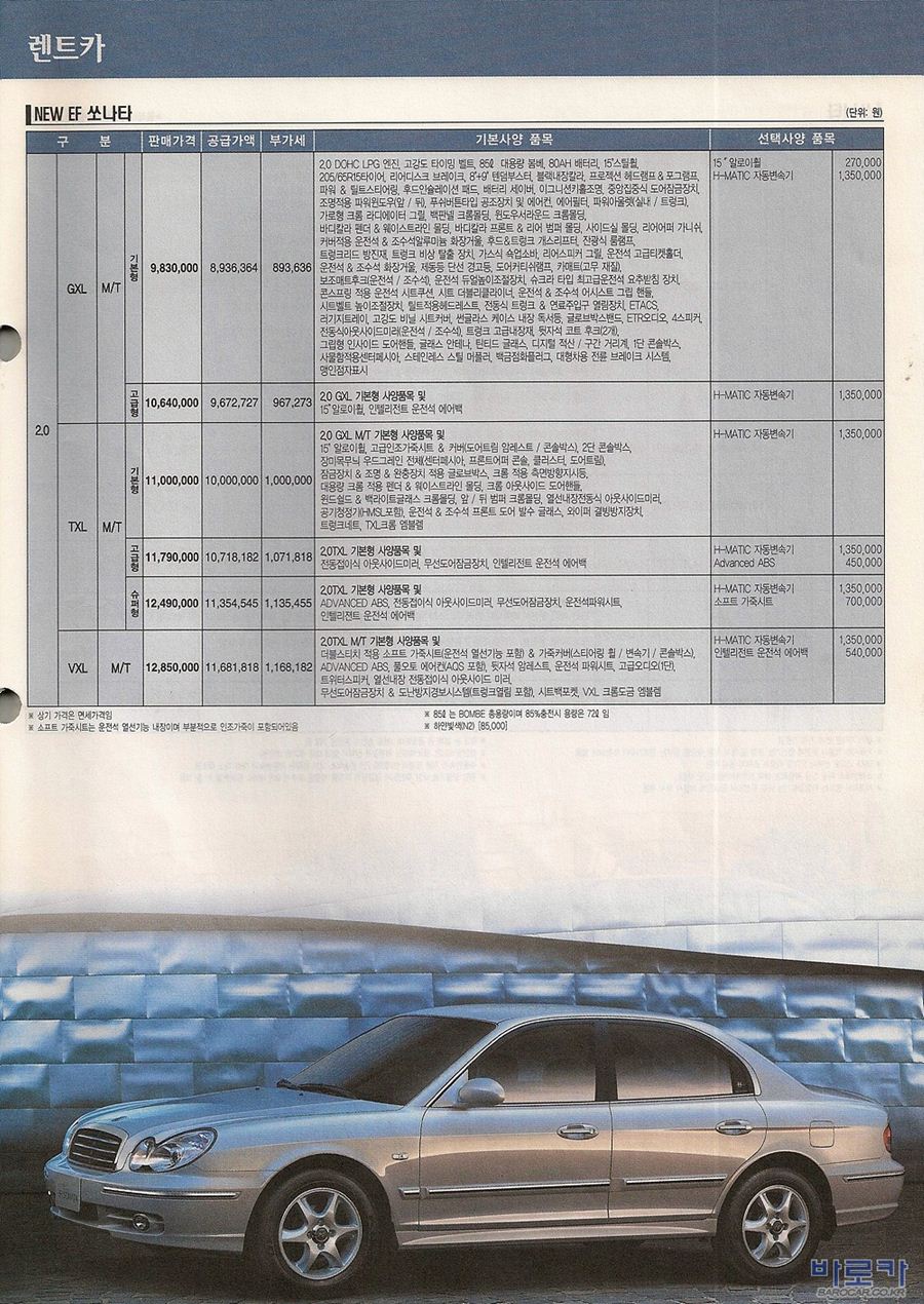 2005년 6월 뉴EF쏘나타 LPG 신차가격표