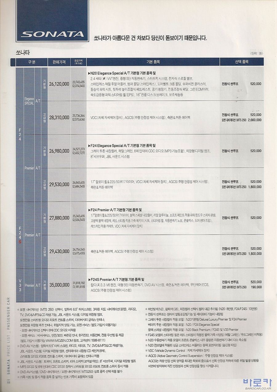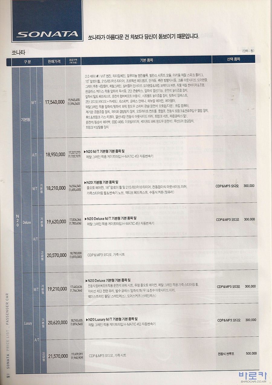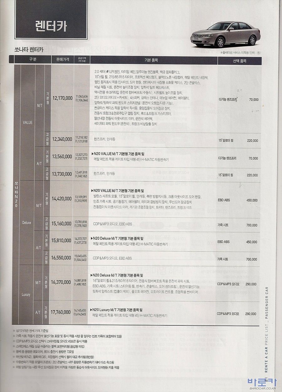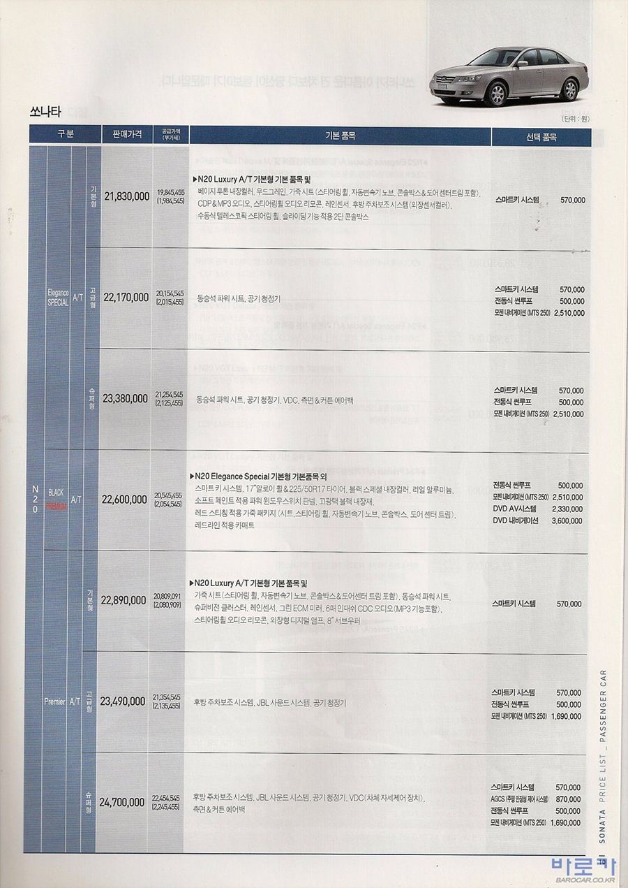 2007년 10월 NF쏘나타 신차가격표 (LPG포함)