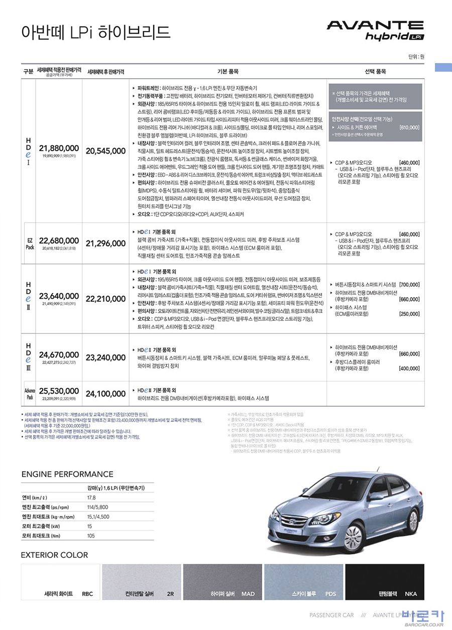 2010년 2월 아반떼HD LPi 하이브리드 신차가격표