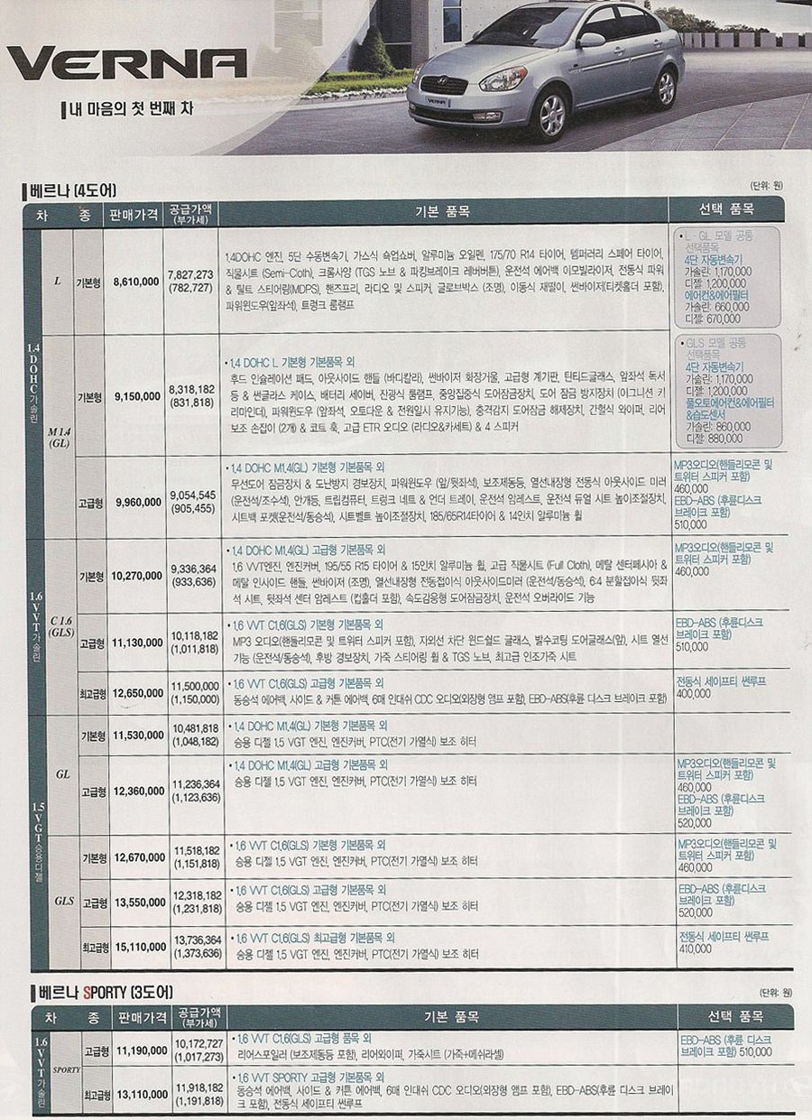 ※ 본 가격표의 모든 저작권은 해당 차량 제조사에 있습니다.