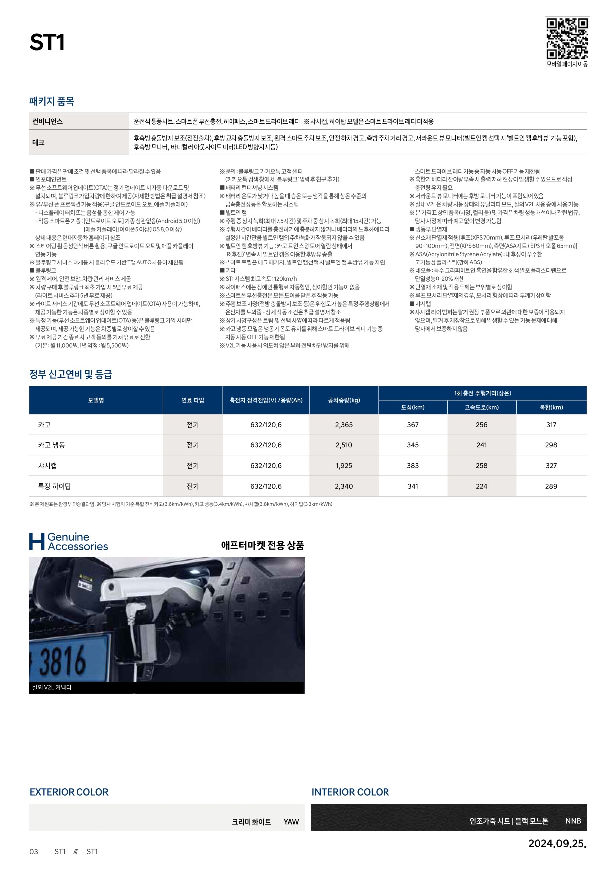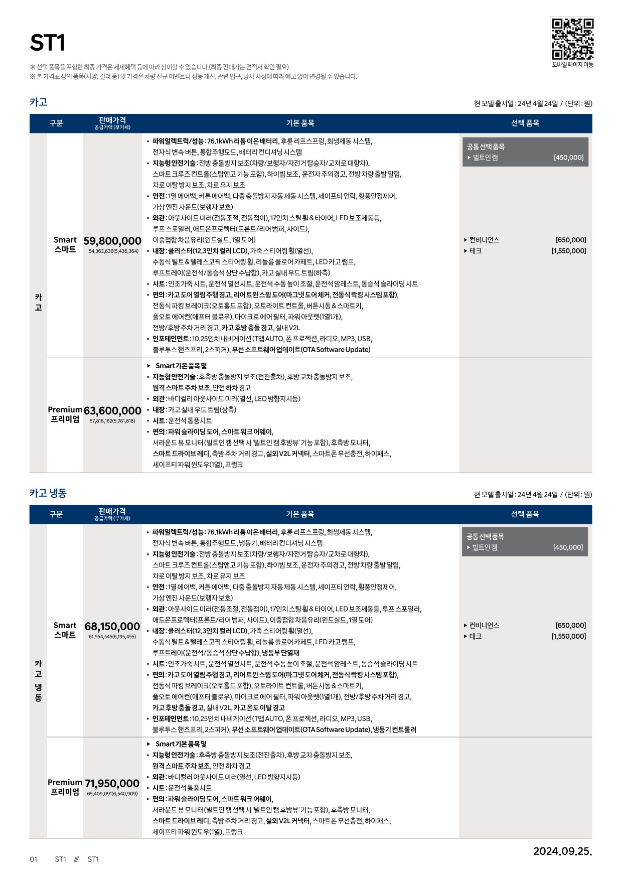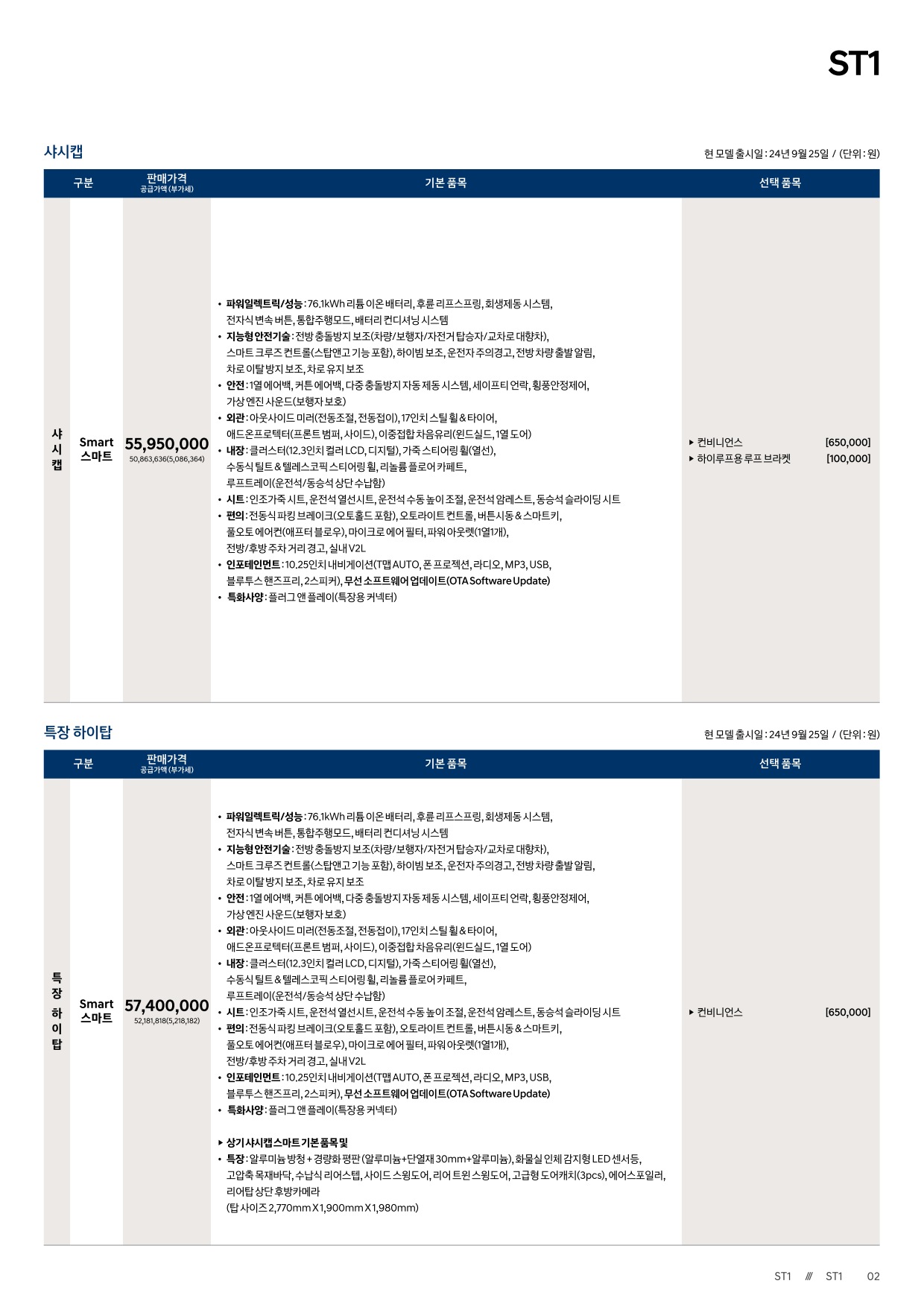 2024년 9월 ST1 신차가격표 (2025년형 ST1 출시)