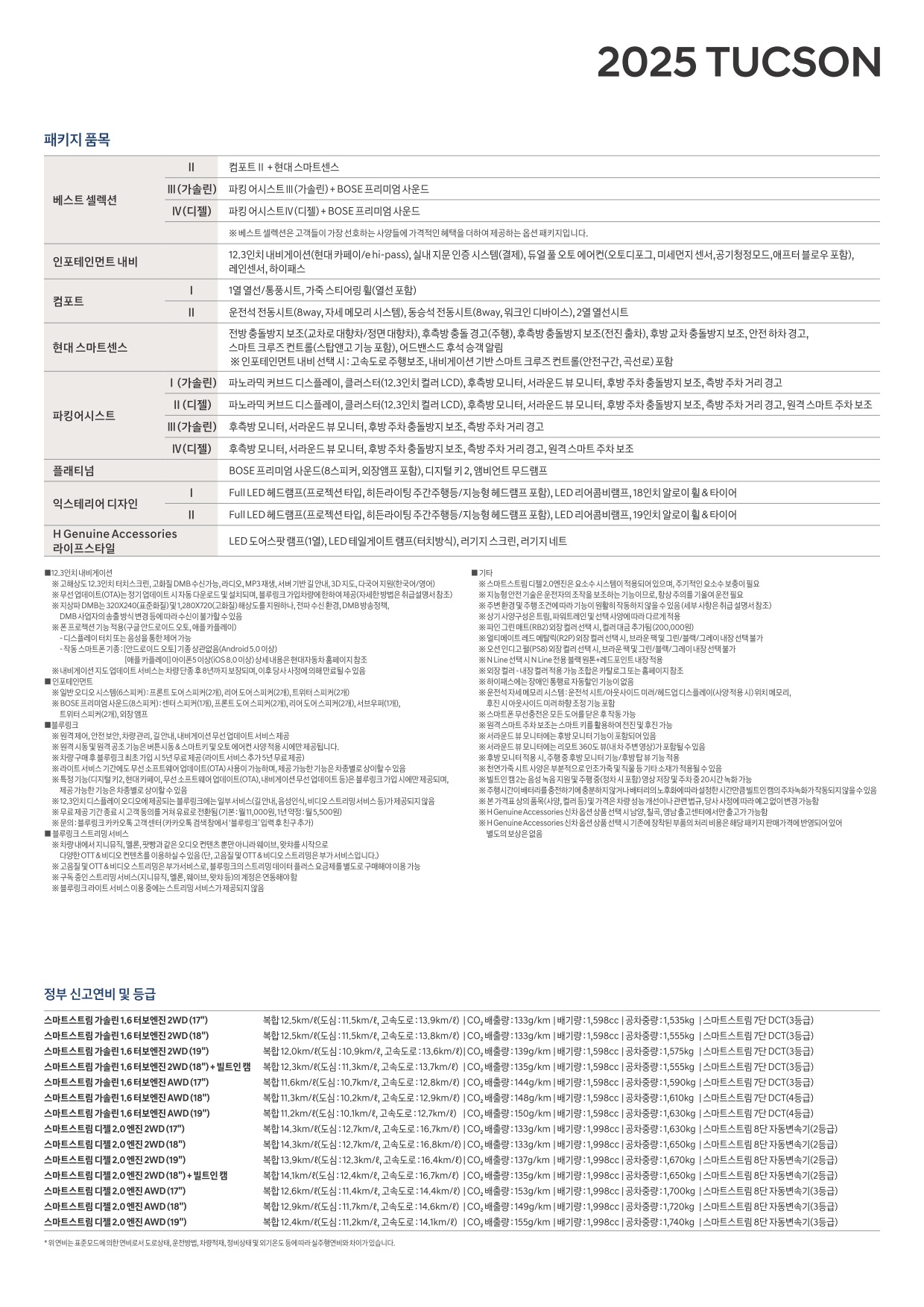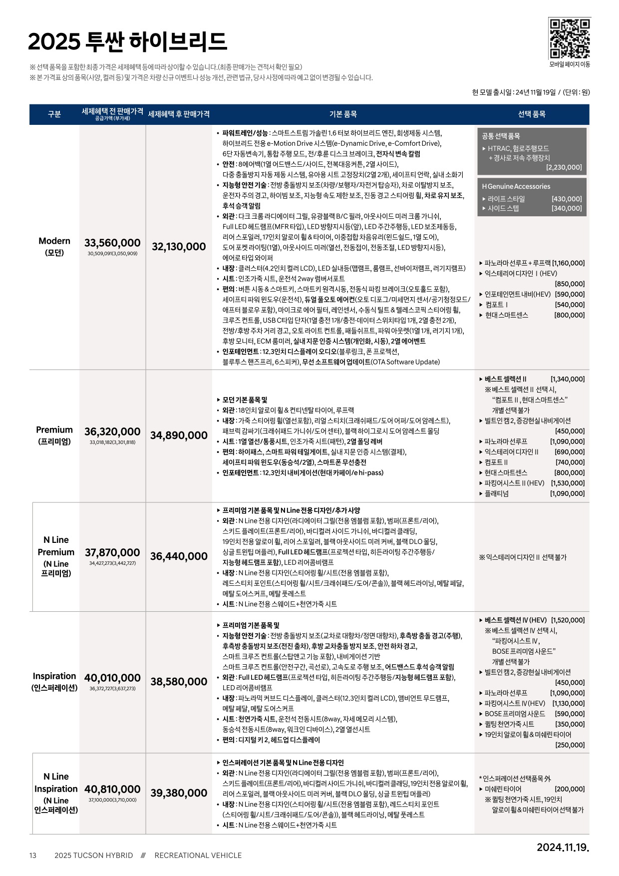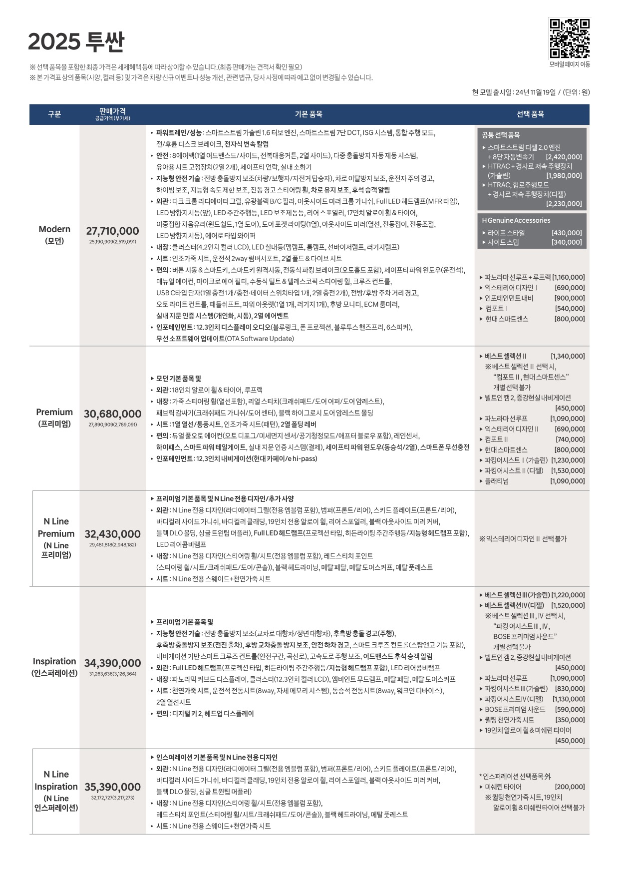 2024년 11월 투싼 신차가격표 (2025년형 투싼 출시)