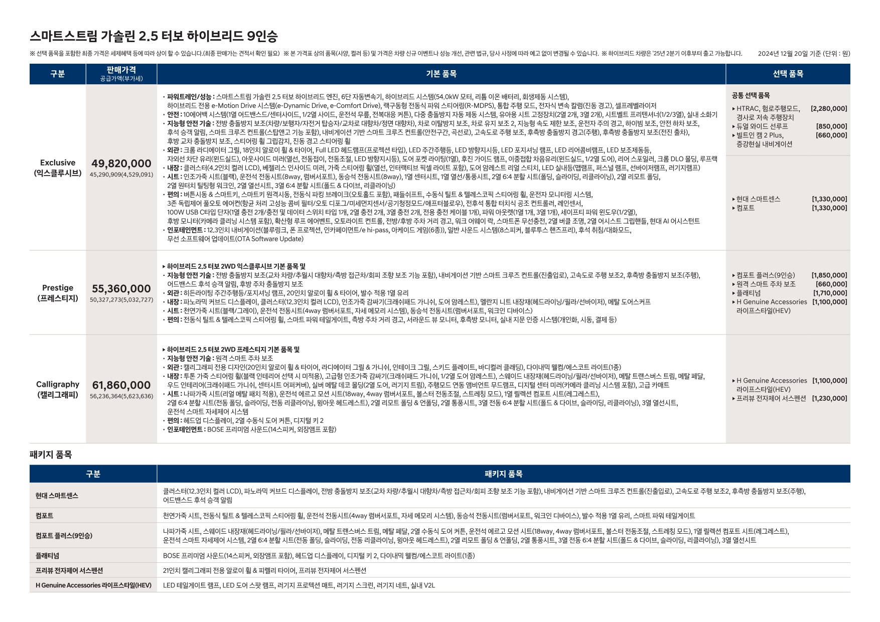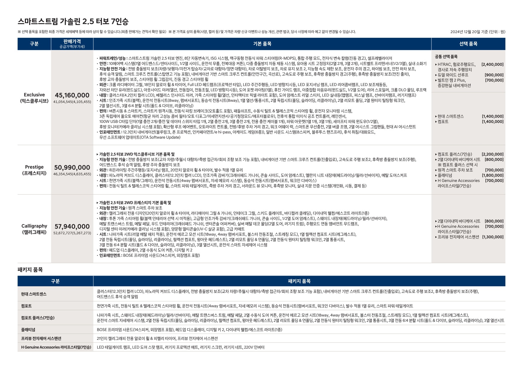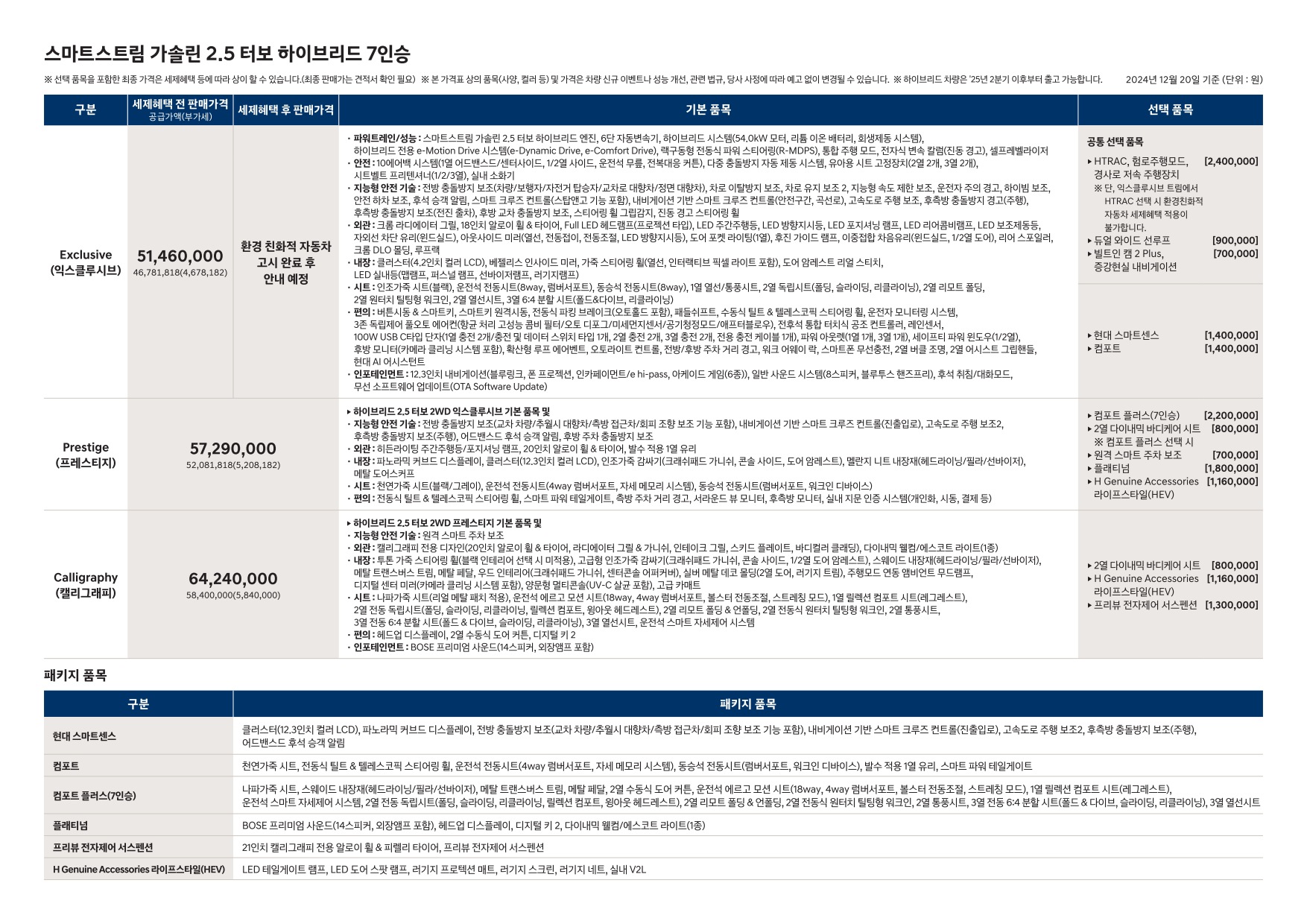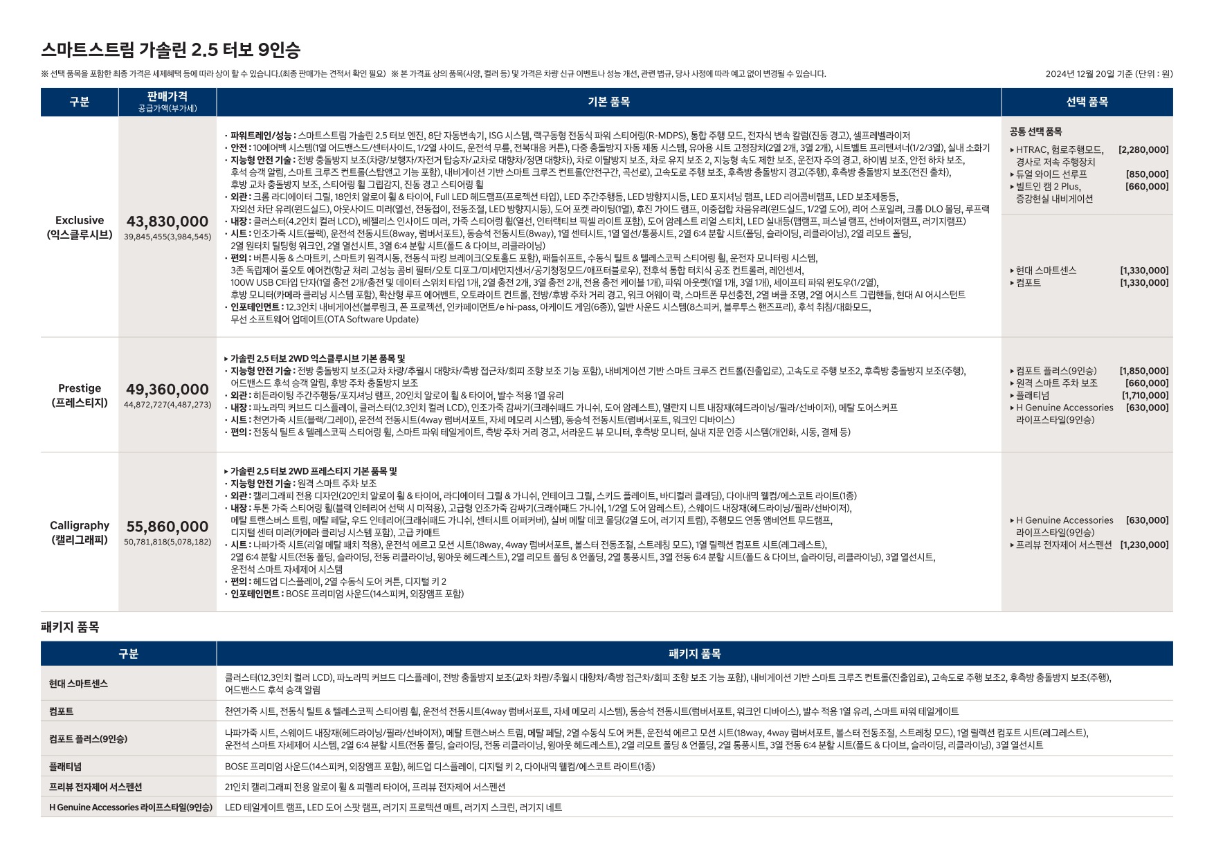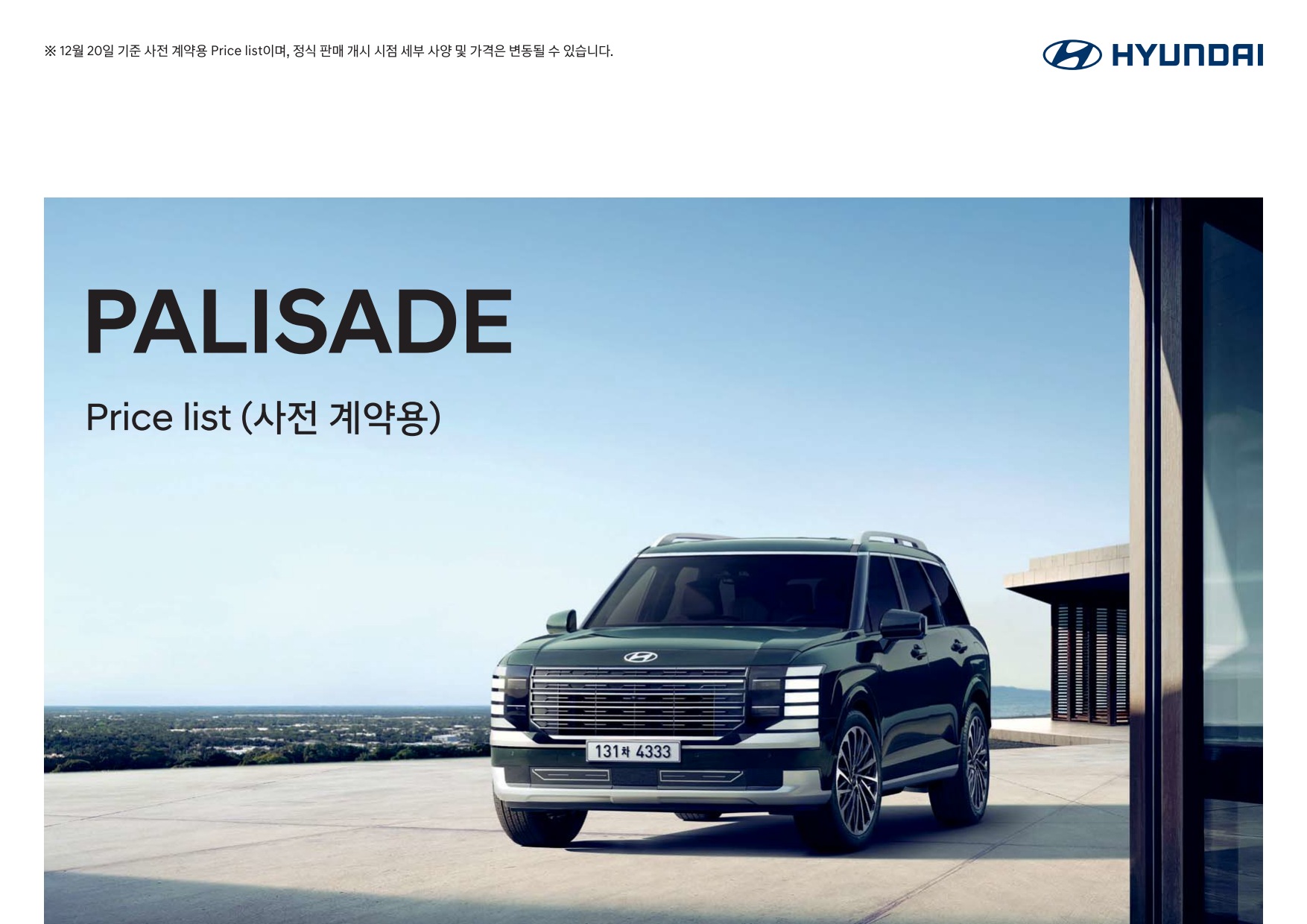 2024년 12월 펠리세이드 신차가격표 (디 올 뉴 펠리세이드 사전계약용)