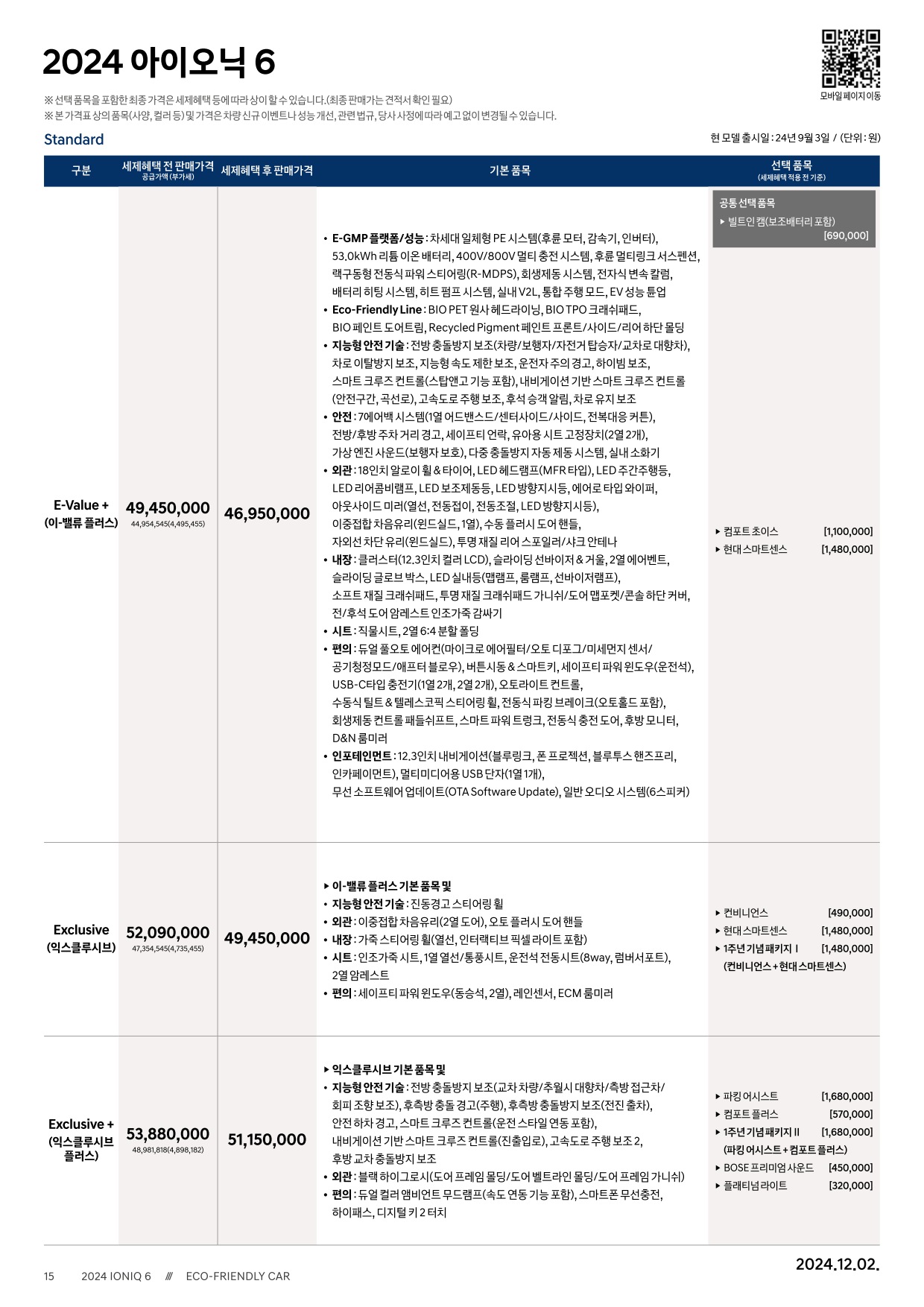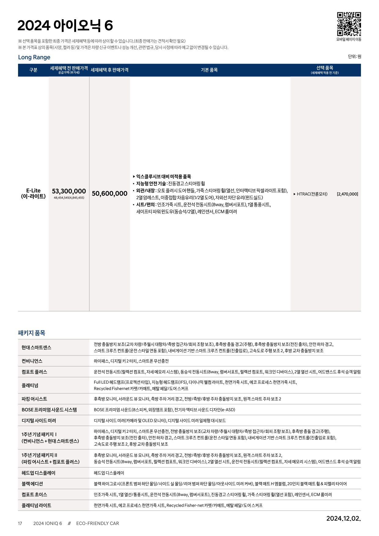 2024년 12월 아이오닉6 신차가격표