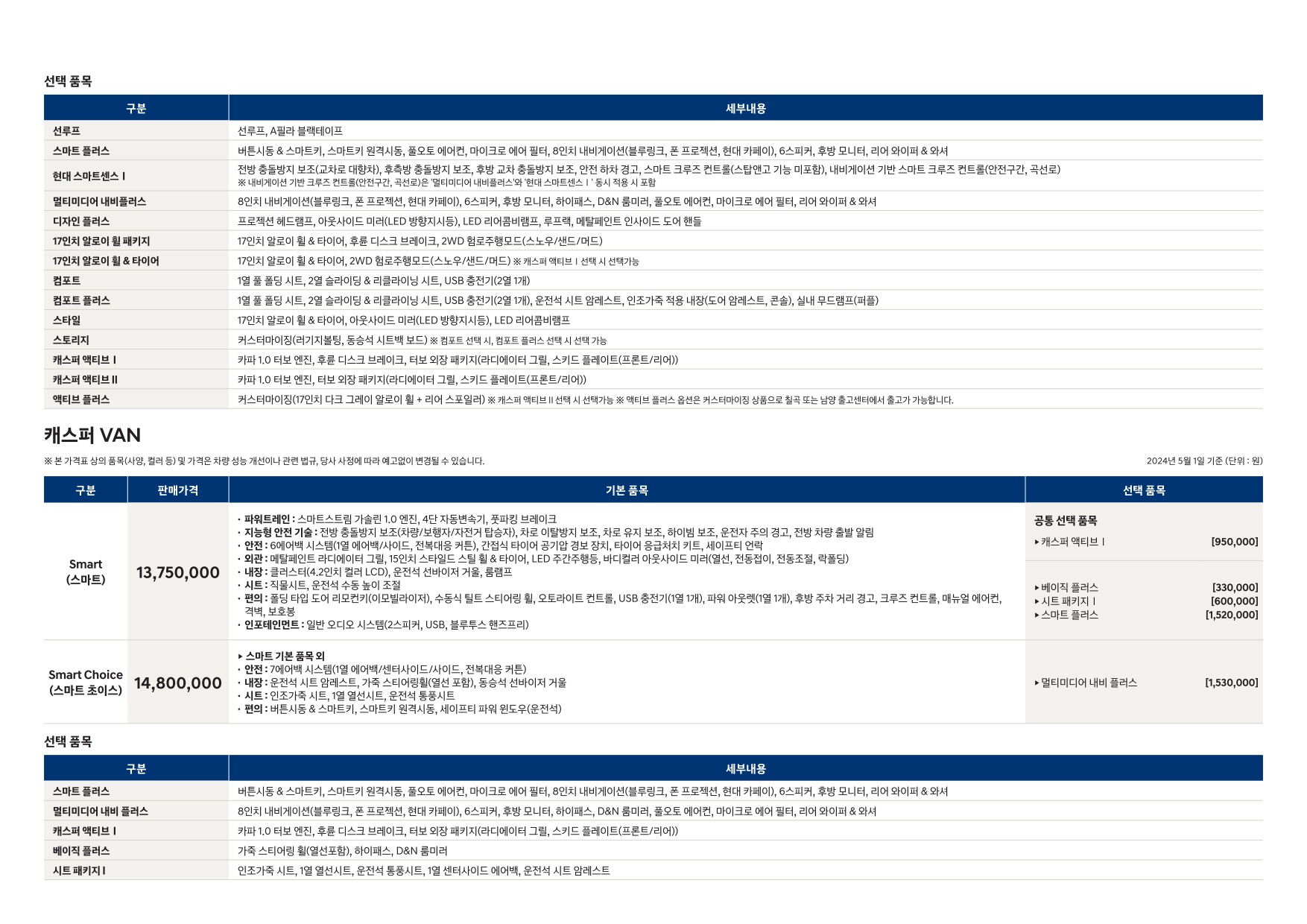 2024년 7월 캐스퍼 신차가격표