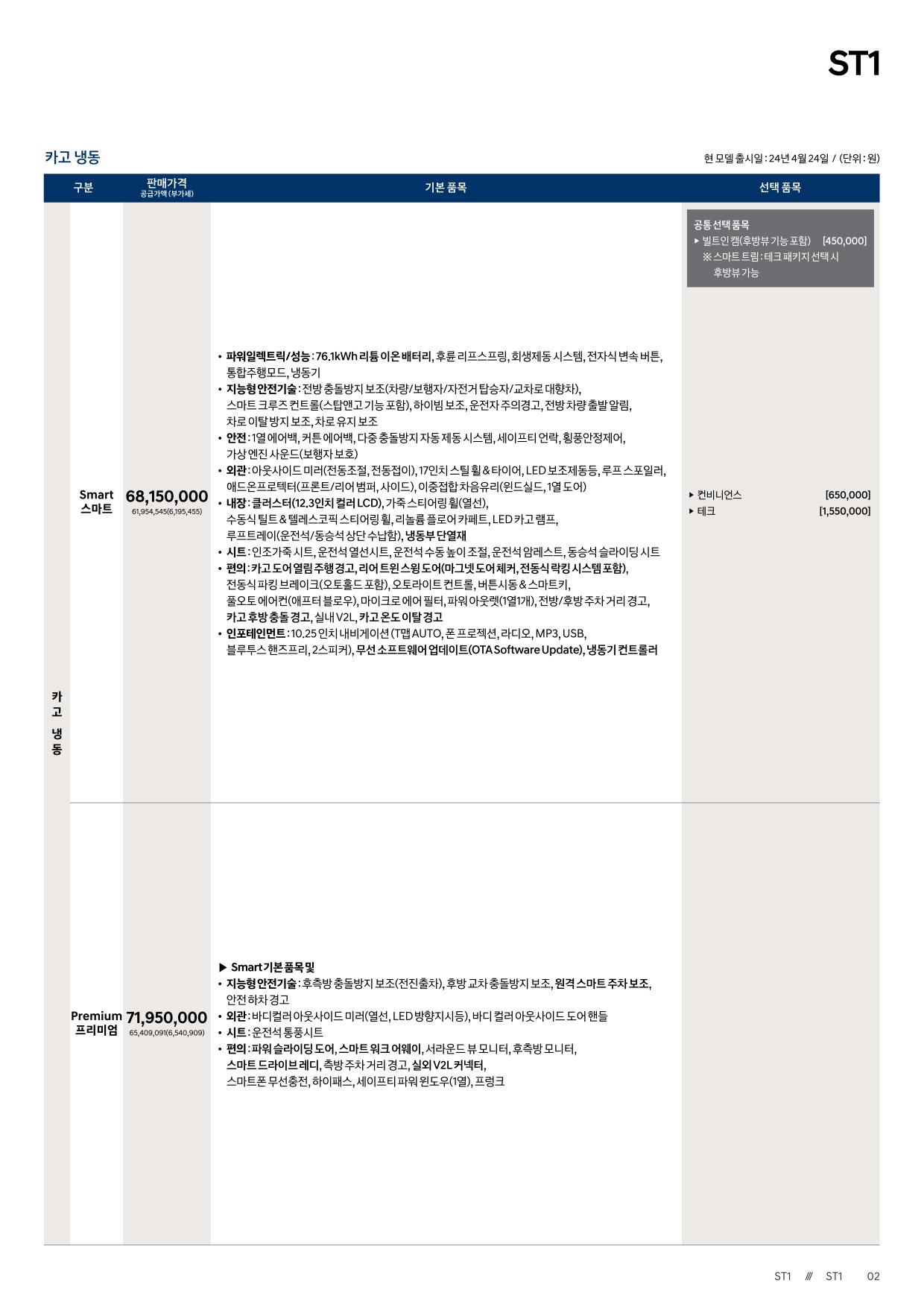 2024년 5월 ST1 신차가격표