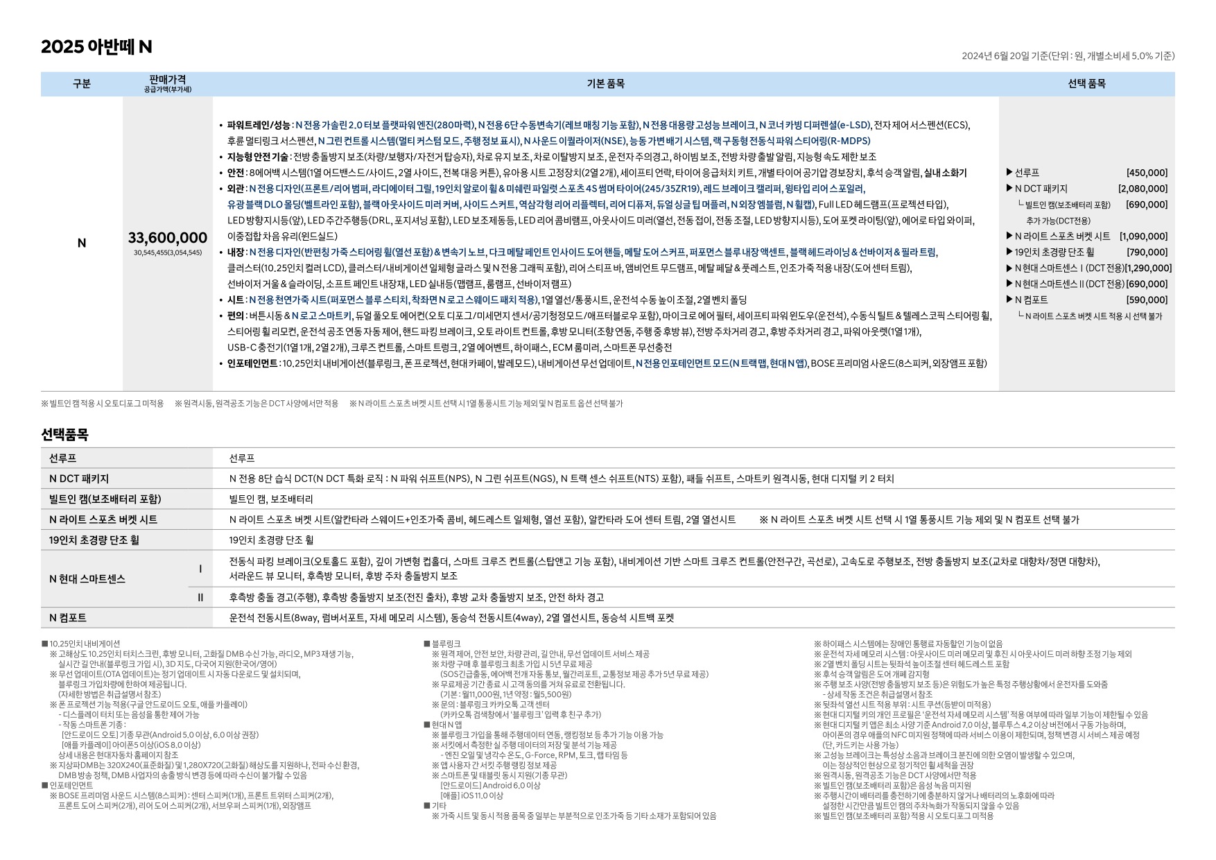 2024년 6월 아반떼N 신차가격표 (2025년형 더뉴아반떼N 출시)