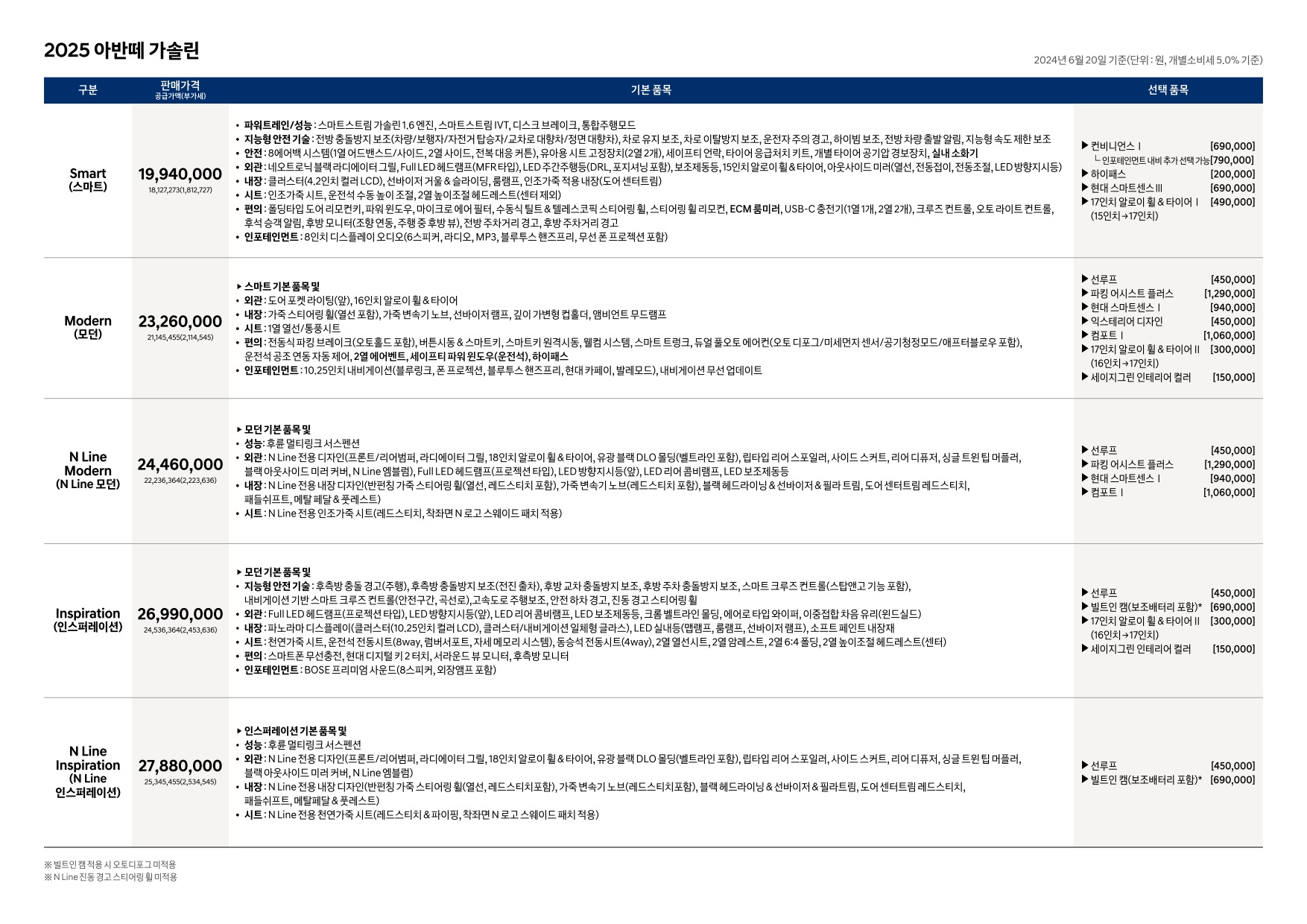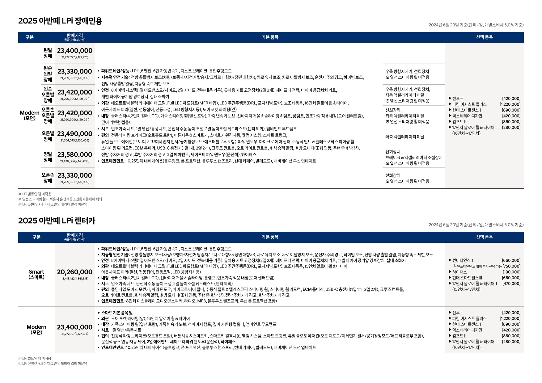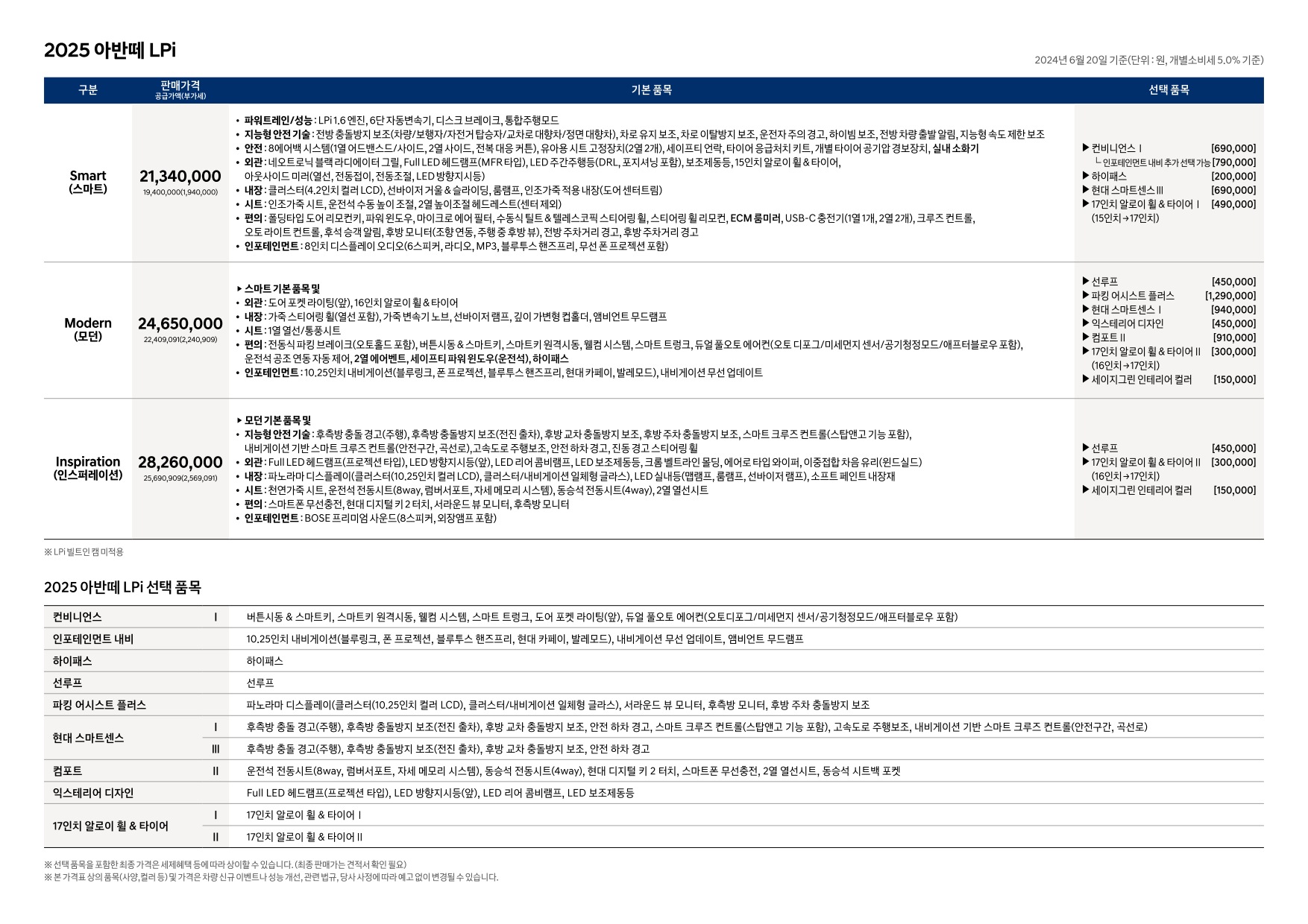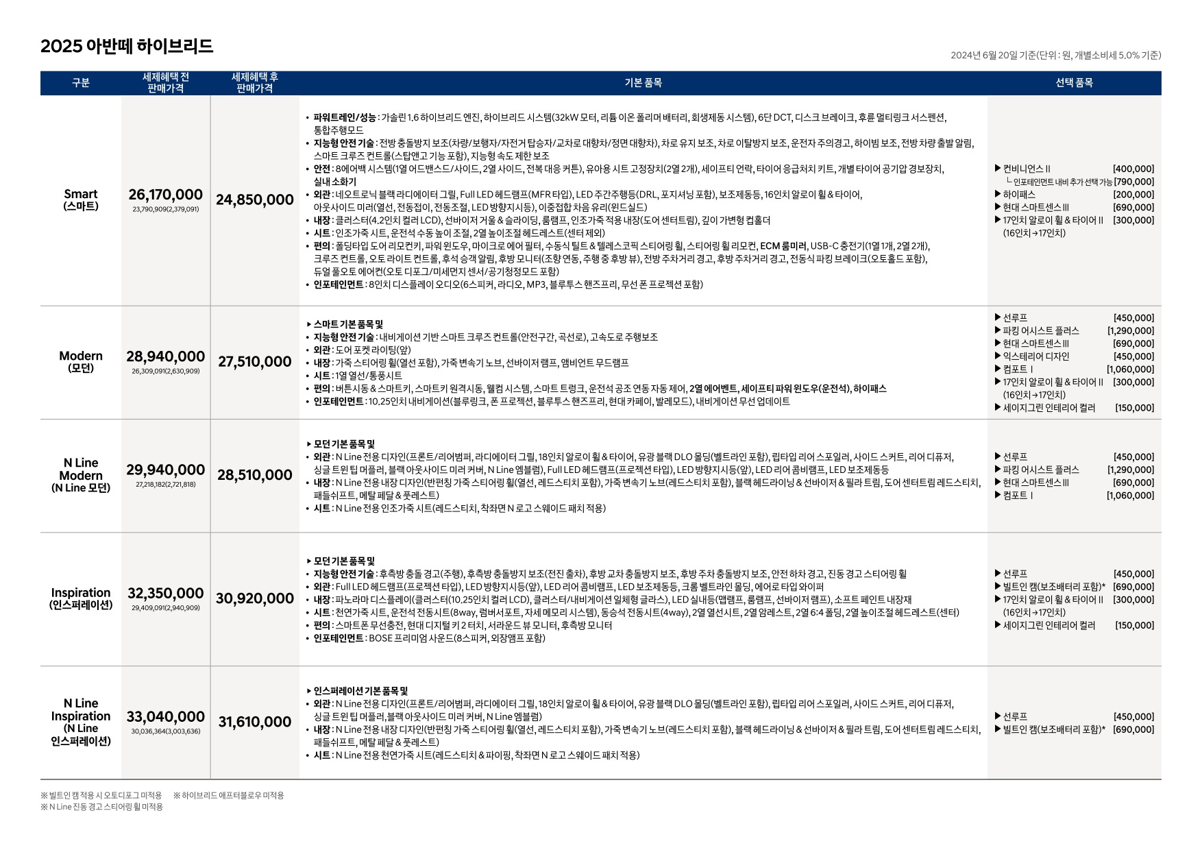 2024년 6월 아반떼 & 아반떼 하이브리드 신차가격표 (2025년형 아반떼 출시)