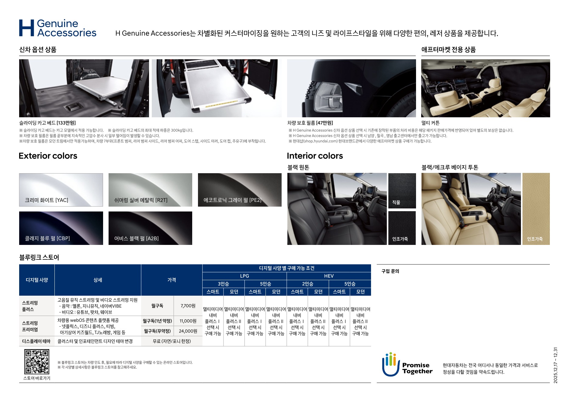 2025년 12월 스타리아 라운지 & 라운지 모빌리티 신차가격표 (더 뉴 스타리아 출시)