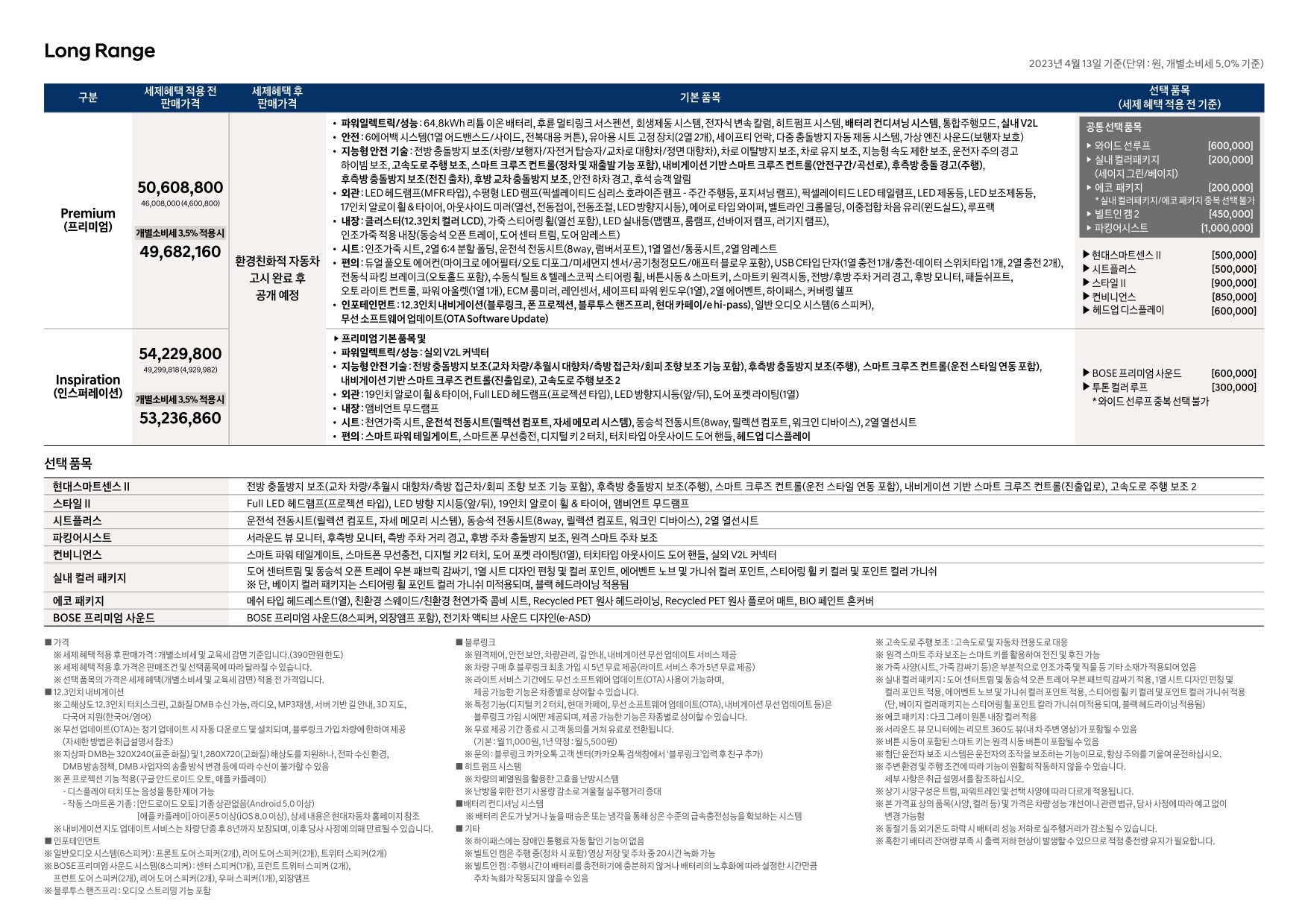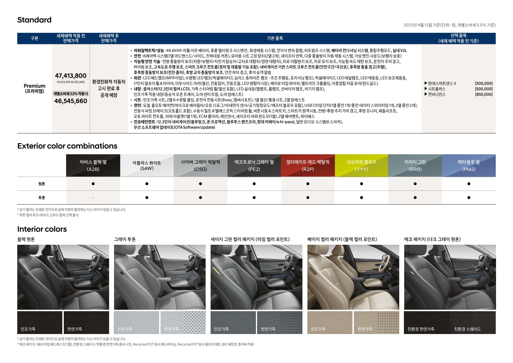 2023년 4월 코나 일렉트릭 신차가격표 (디올뉴코나 일렉트릭 출시)