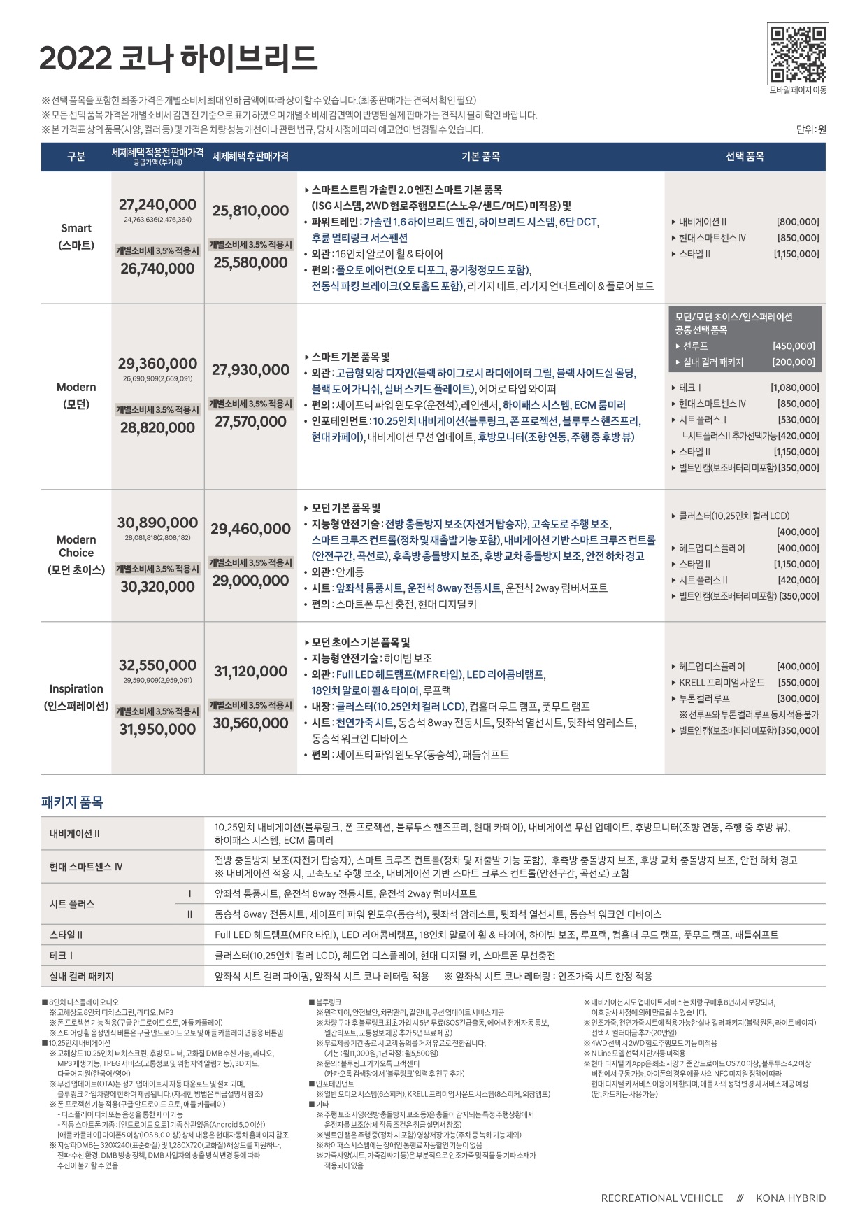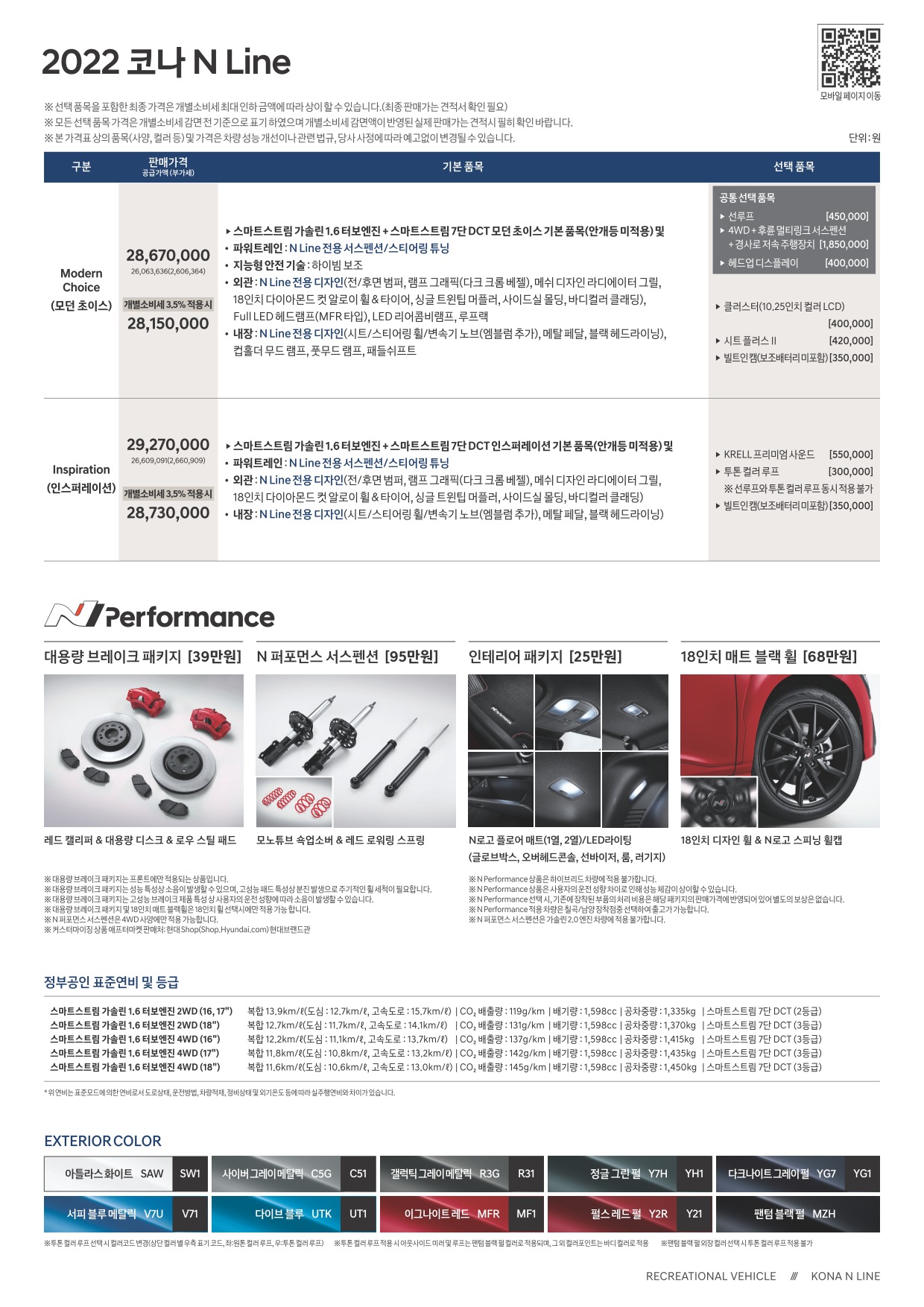 2022년 4월 코나 신차가격표 (2022년형 코나, 코나하이브리드, 코나N라인 출시)