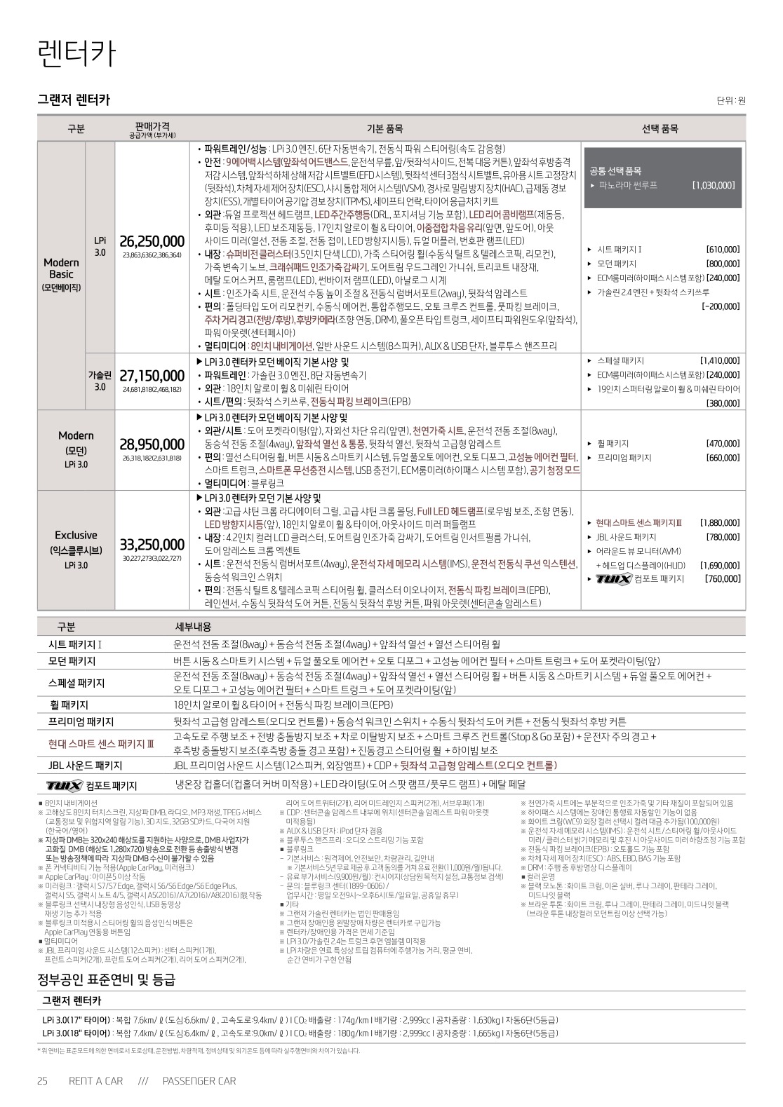 ※ 본 가격표의 모든 저작권은 해당 차량 제조사에 있습니다.