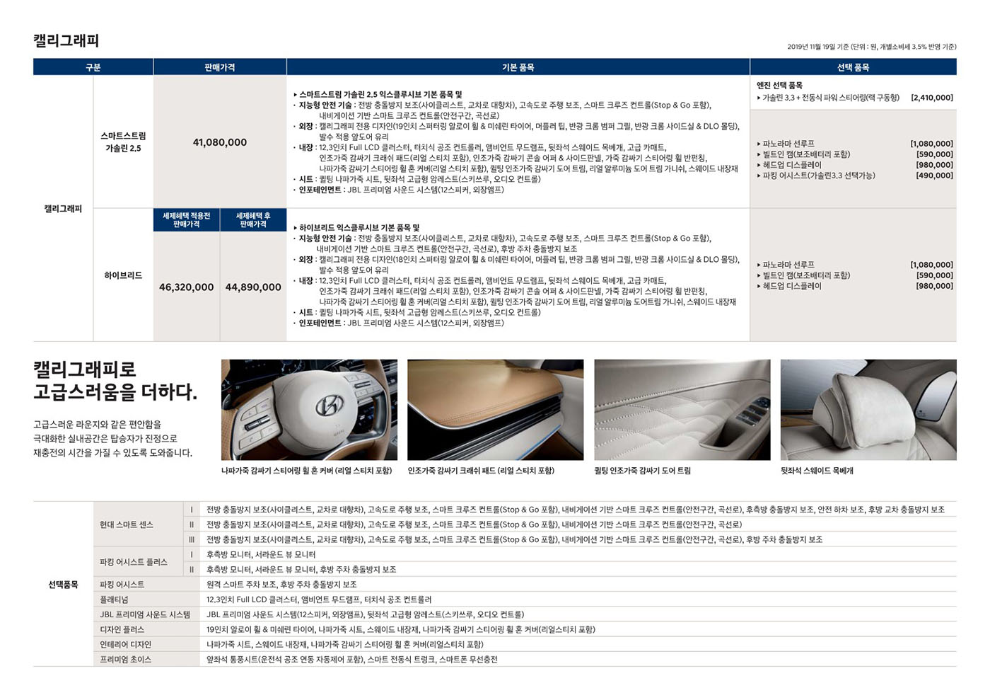 2020년 2월 그랜저 및 그랜저 하이브리드 신차가격표