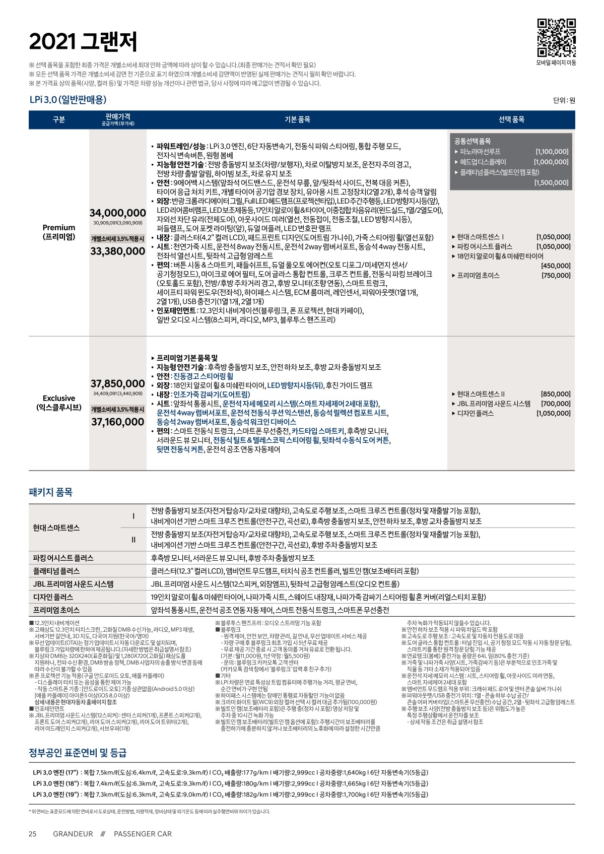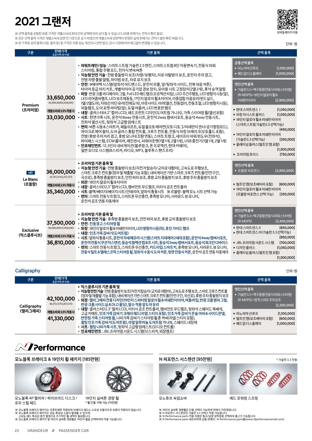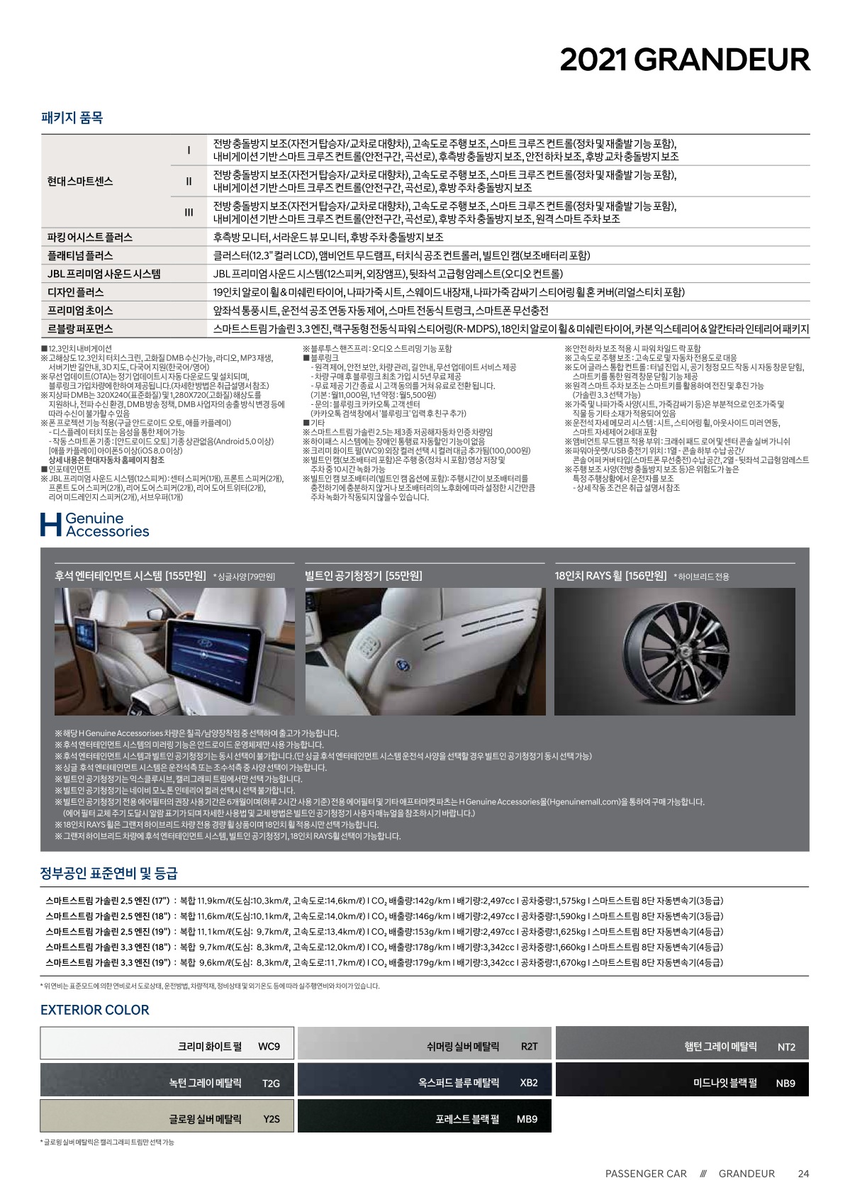 2020년 2월 그랜저 및 그랜저 하이브리드 신차가격표