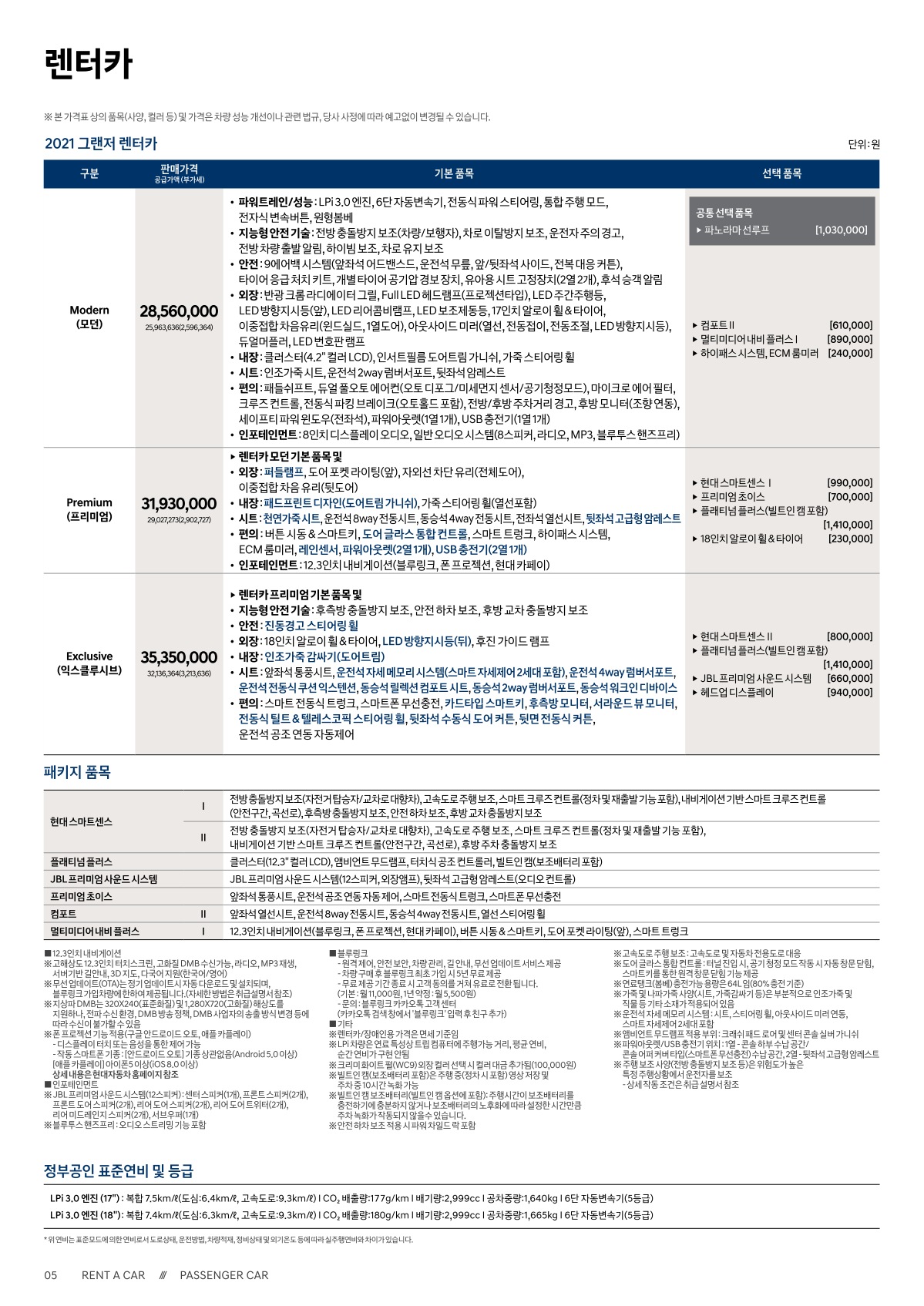 ※ 본 가격표의 모든 저작권은 해당 차량 제조사에 있습니다.